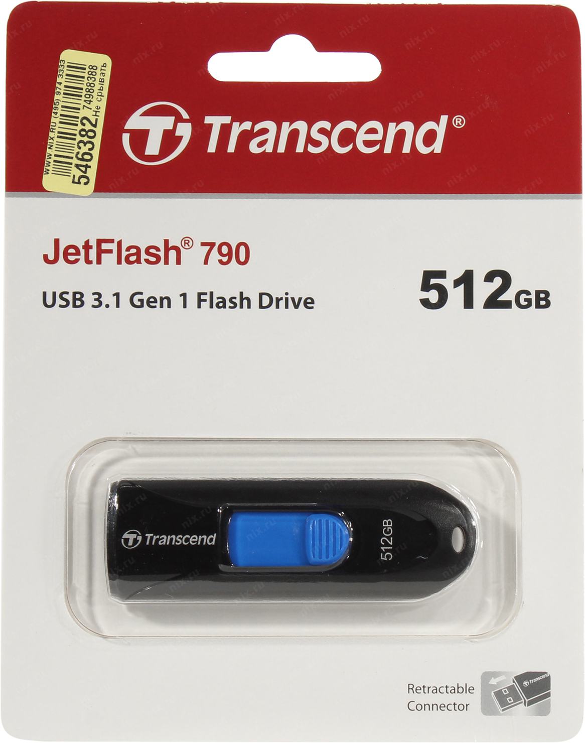 Флеш Диск Transcend 512Gb Jetflash 790 TS512GJF790K USB3.0 черный
