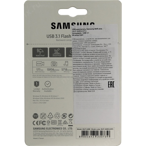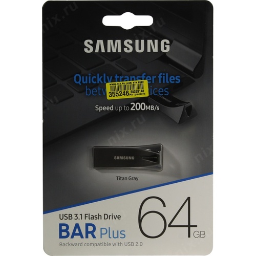 Носитель информации Samsung Drive 64GB BAR Plus Grey USB 3.1 [MUF-64BE4/APC/CN]