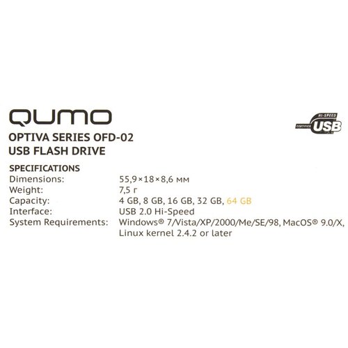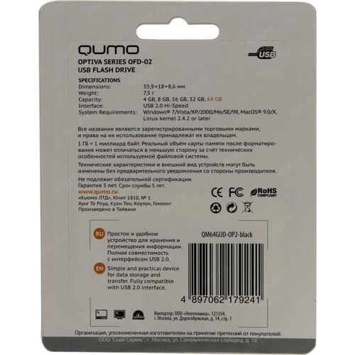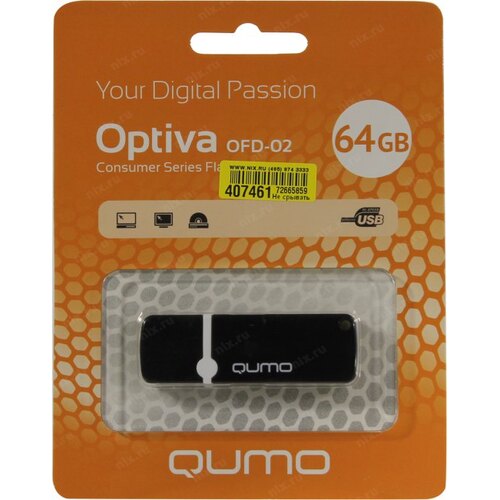Носитель информации USB 2.0 QUMO 64GB Optiva 02 Black [QM64GUD-OP2-black] | НИКС Екатеринбург