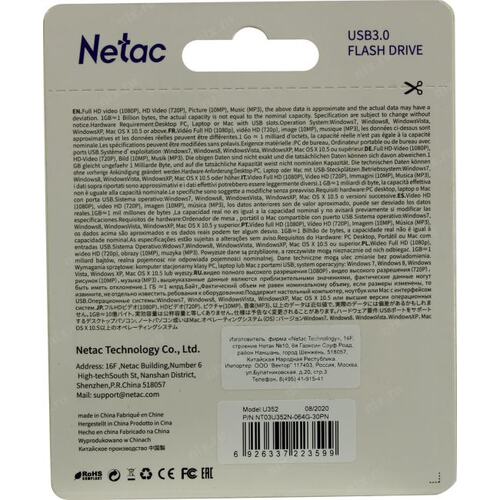 Флеш Диск Netac 64Gb U352 NT03U352N-064G-30PN USB3.0 серебристый