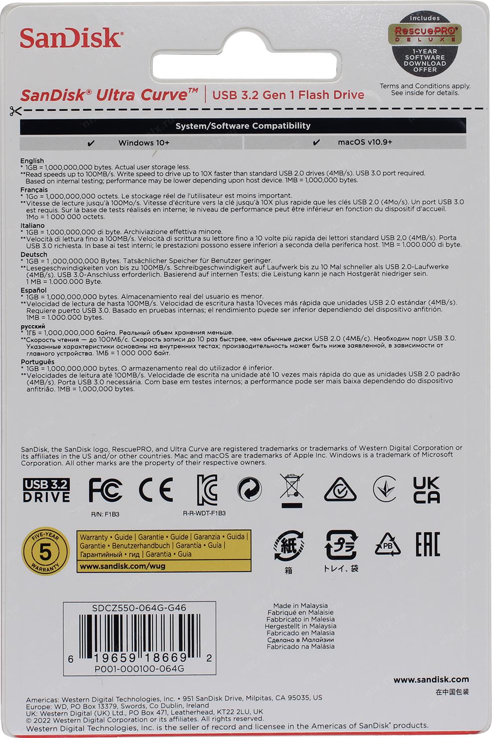 Флэш-накопитель USB3.2 64GB SDCZ550-064G-G46 SANDISK | НИКС Екатеринбург