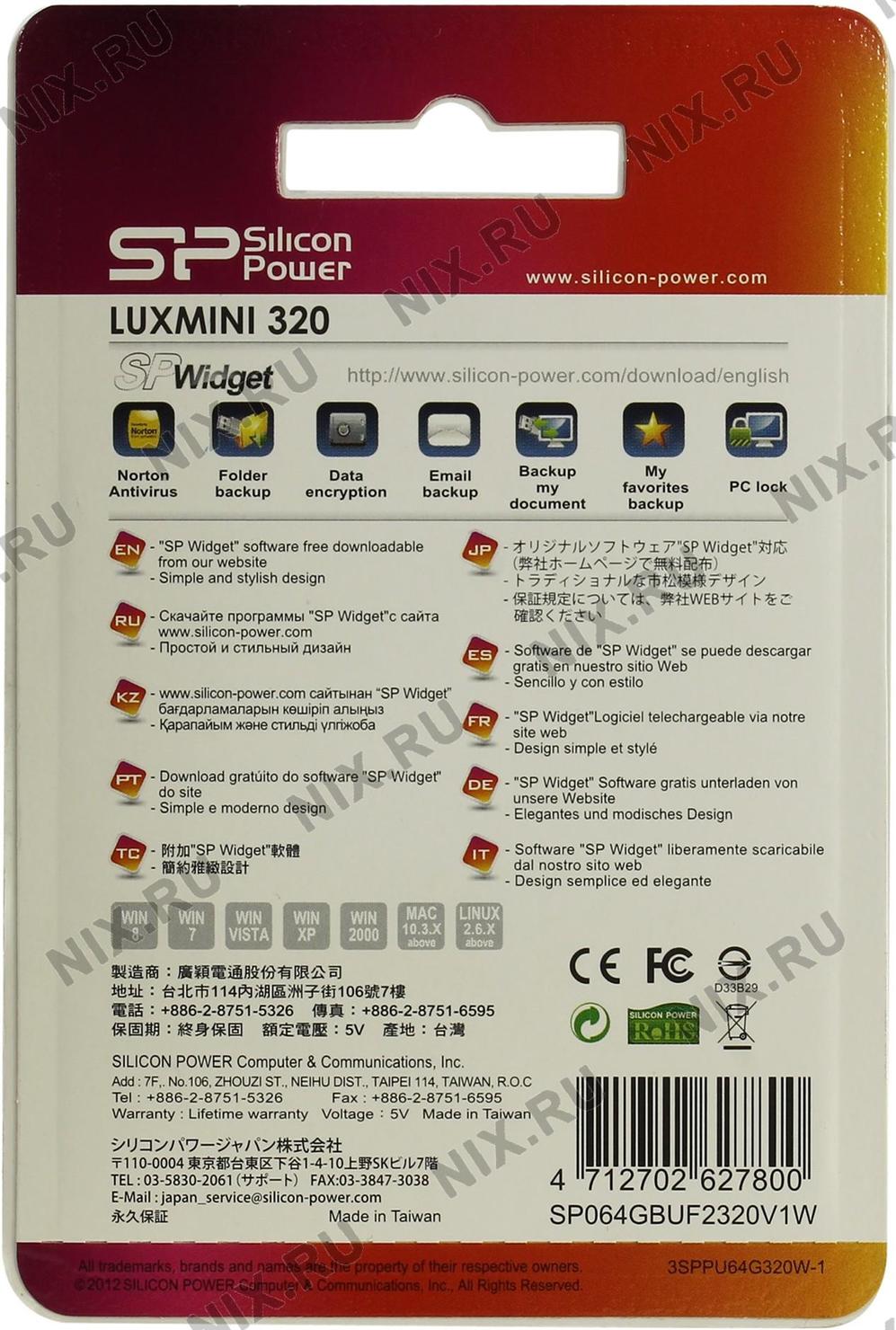 Флеш Диск Silicon Power 64Gb LuxMini 320 SP064GBUF2320V1W USB2.0 белый
