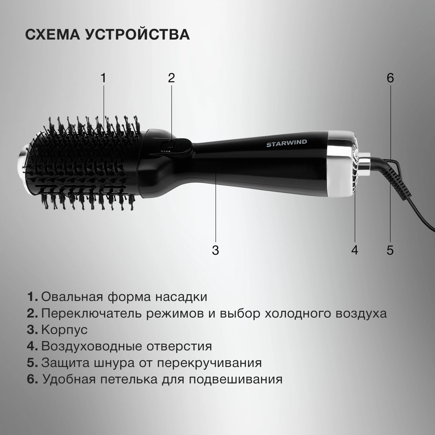 Фен-щетка Starwind SHB 7760 1200Вт черный/ серебристый