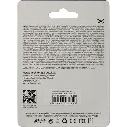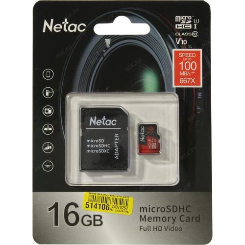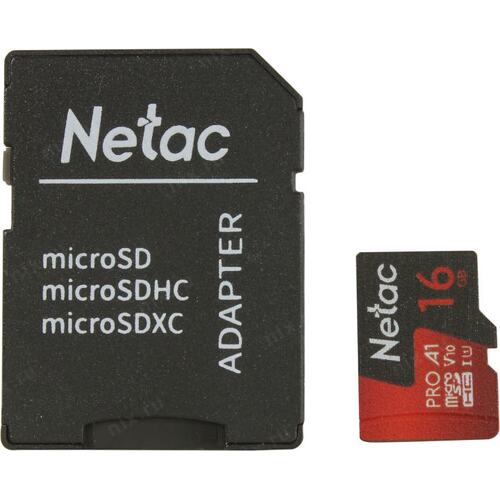 Флеш карта microSDHC 16GB Netac NT02P500PRO-016G-R P500 Extreme Pro V10 A1 + adapter