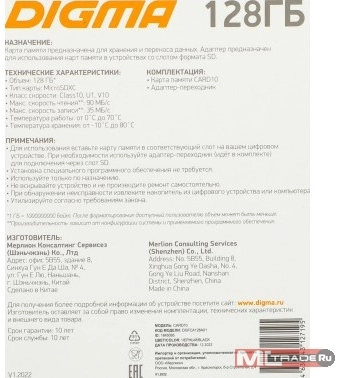 Флеш карта microSDXC 128GB Digma CARD10 V10 + adapter DGFCA128A01