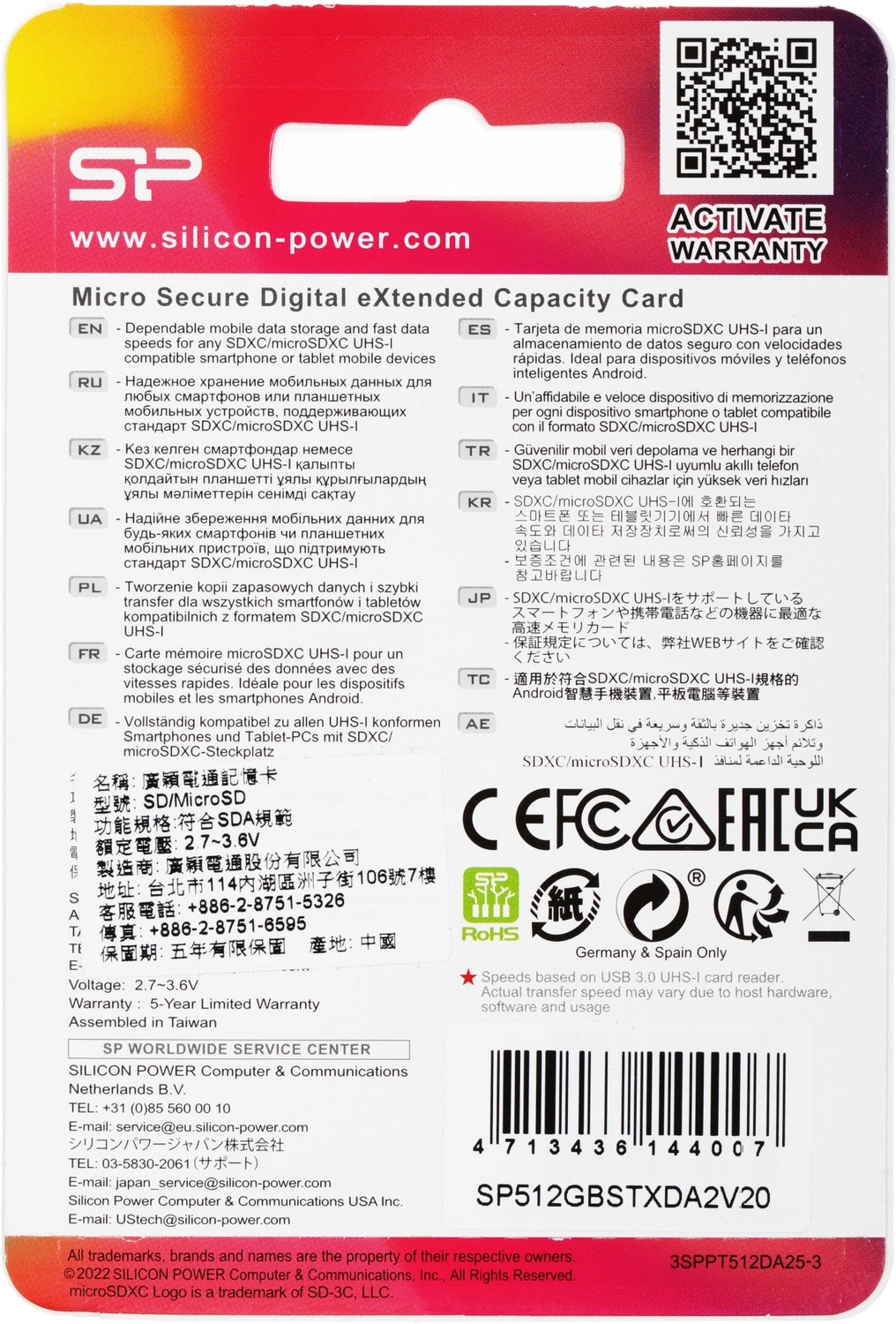 Флеш карта microSDXC 512GB Silicon Power SP512GBSTXDA2V20 Superior V30 A2 w/ o adapter