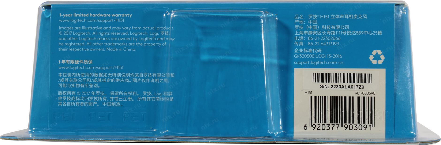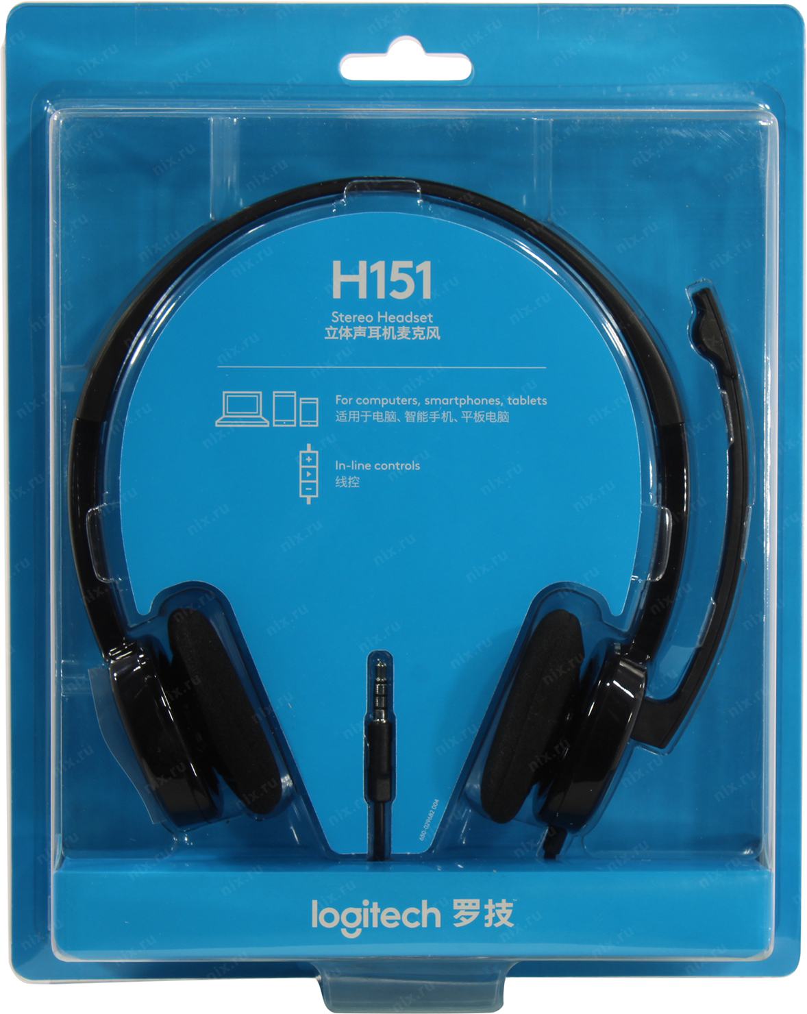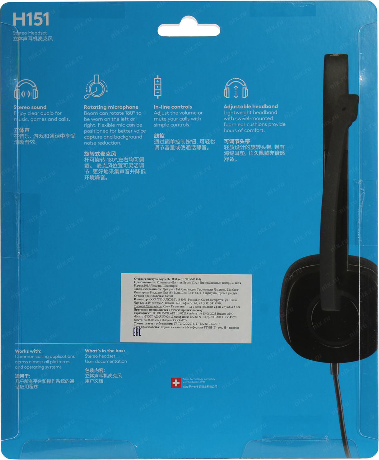 Гарнитура Logitech H151 (черная, 1 x 3.5мм, элементы управления на кабеле, кабель 1.8м) (арт. 981-000590, M/ N: A-00029)
