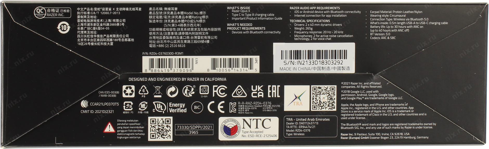 Полностью погрузитесь в игру или музыку с Razer Opus X - элегантной беспроводной Bluetooth-гарнитурой с настроенными 40-мм динамиками и микрофоном. Включите активное шумоподавление ANC и наслаждайтесь звуком без отвлекающих факторов. Сокрушайте соперников в игровом режиме с низкой задержкой.