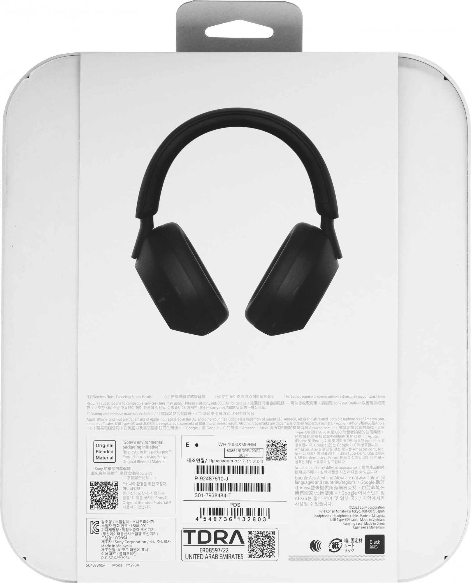 Гарнитура мониторные Sony WH-1000XM5 1.2м черный беспроводные bluetooth оголовье (WH-1000XM5/ B)