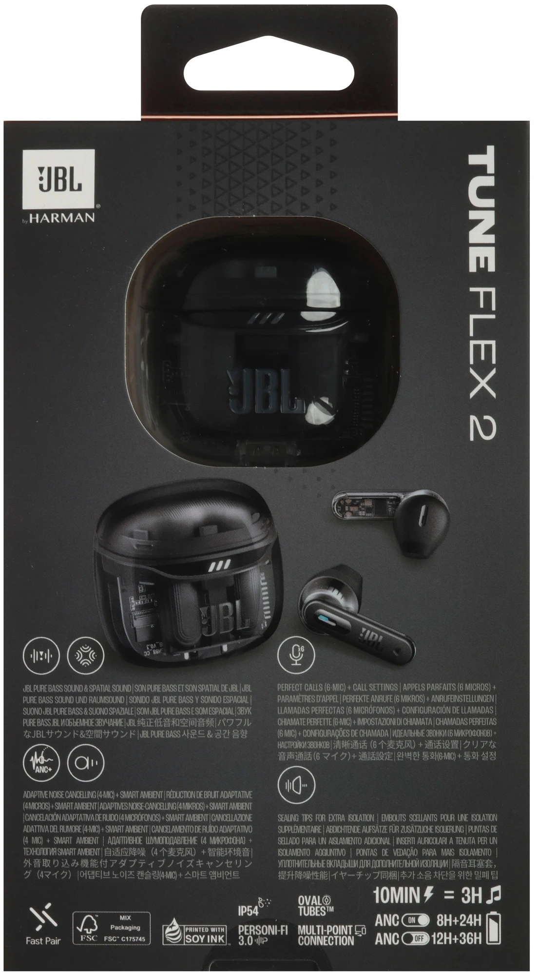 наушники Tune Flex 2 Ghost Edition. USB-кабель для зарядки Type-C. 3 размера амбушюров. 1 размер открытых амбушюр. Зарядный чехол. Краткое руководство по эксплуатации продукта/ паспорт безопасности