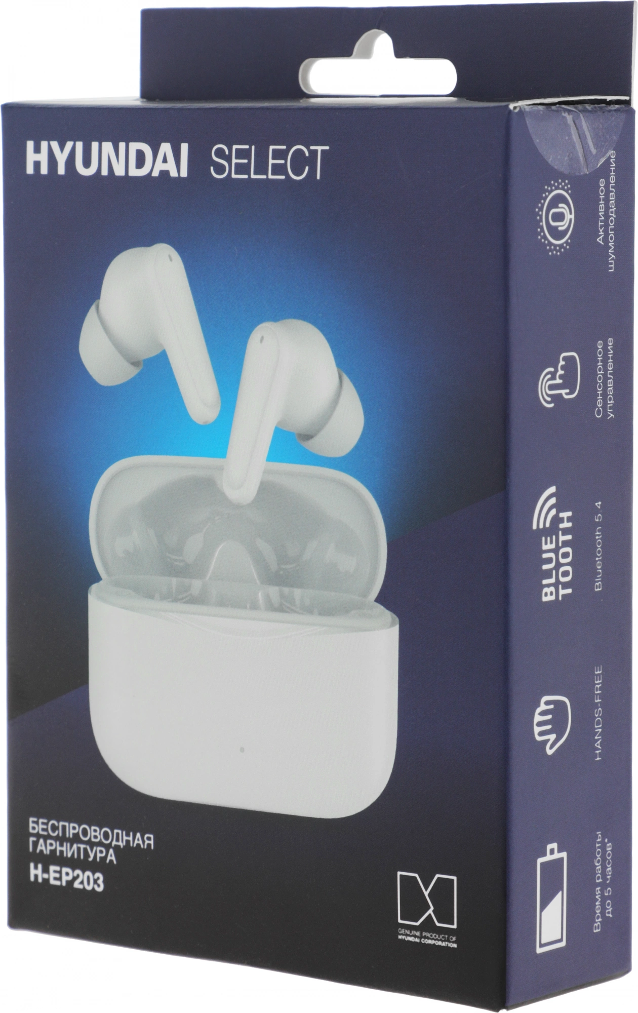 Гарнитура внутриканальные Hyundai Select H-EP203 белый беспроводные bluetooth в ушной раковине (HEP203W)