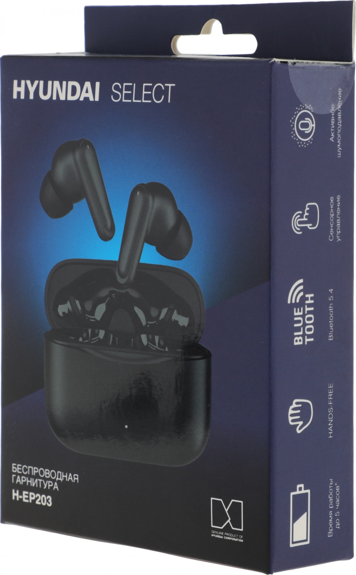 Гарнитура внутриканальные Hyundai Select H-EP203 черный беспроводные bluetooth в ушной раковине (HEP203B)