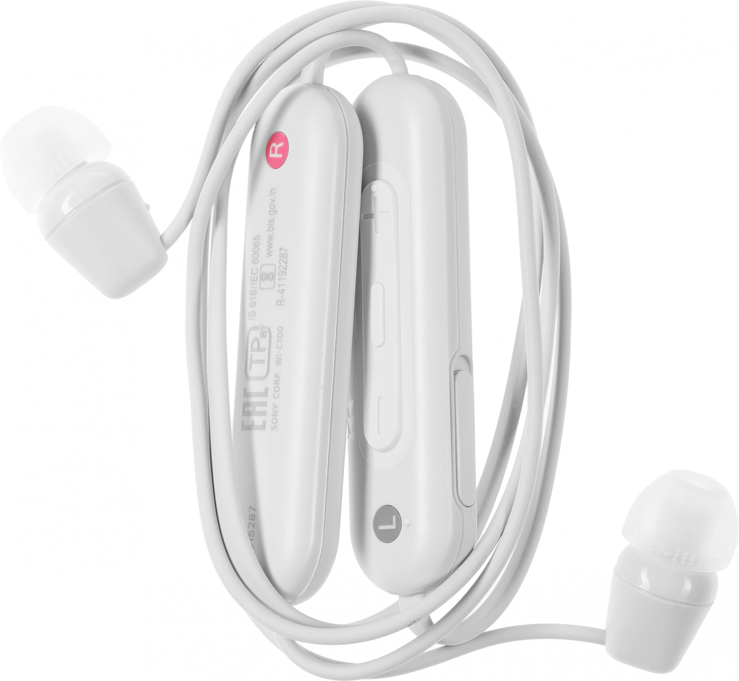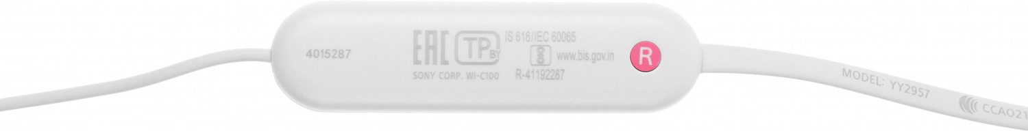 Гарнитура внутриканальные Sony WI-C100 белый беспроводные bluetooth шейный обод (WI-C100/ WZ)