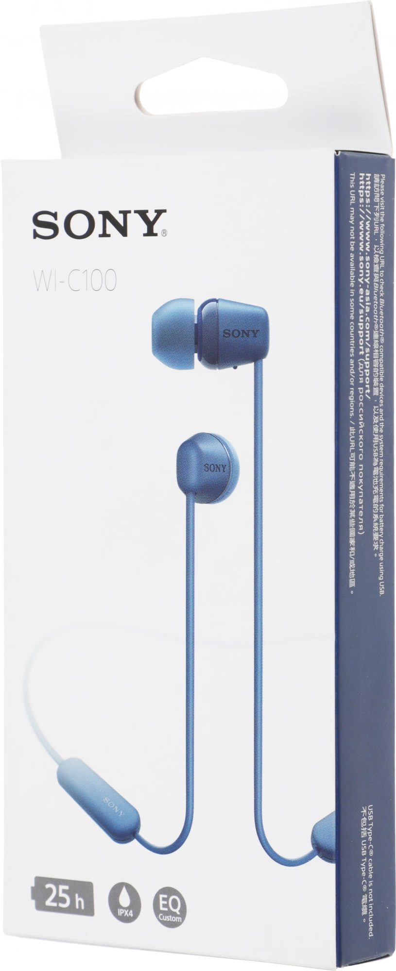 Гарнитура внутриканальные Sony WI-C100 синий беспроводные bluetooth шейный обод (WI-C100/ LZ)