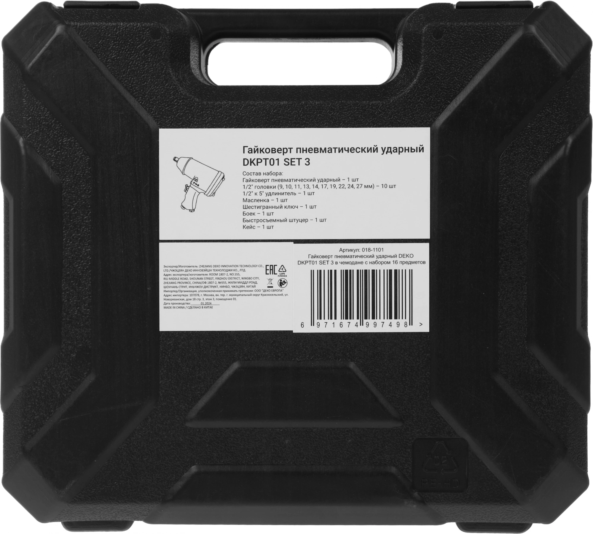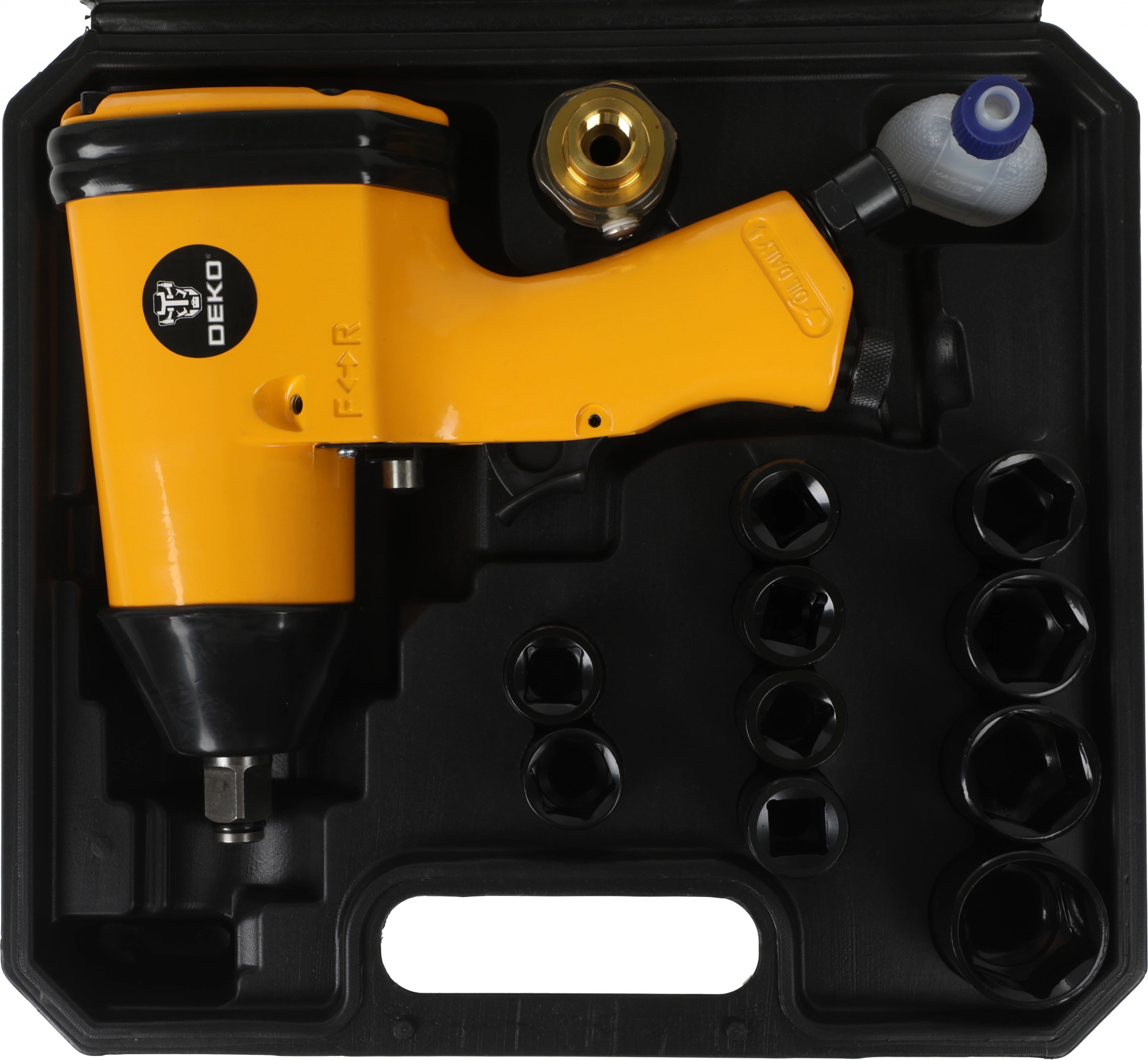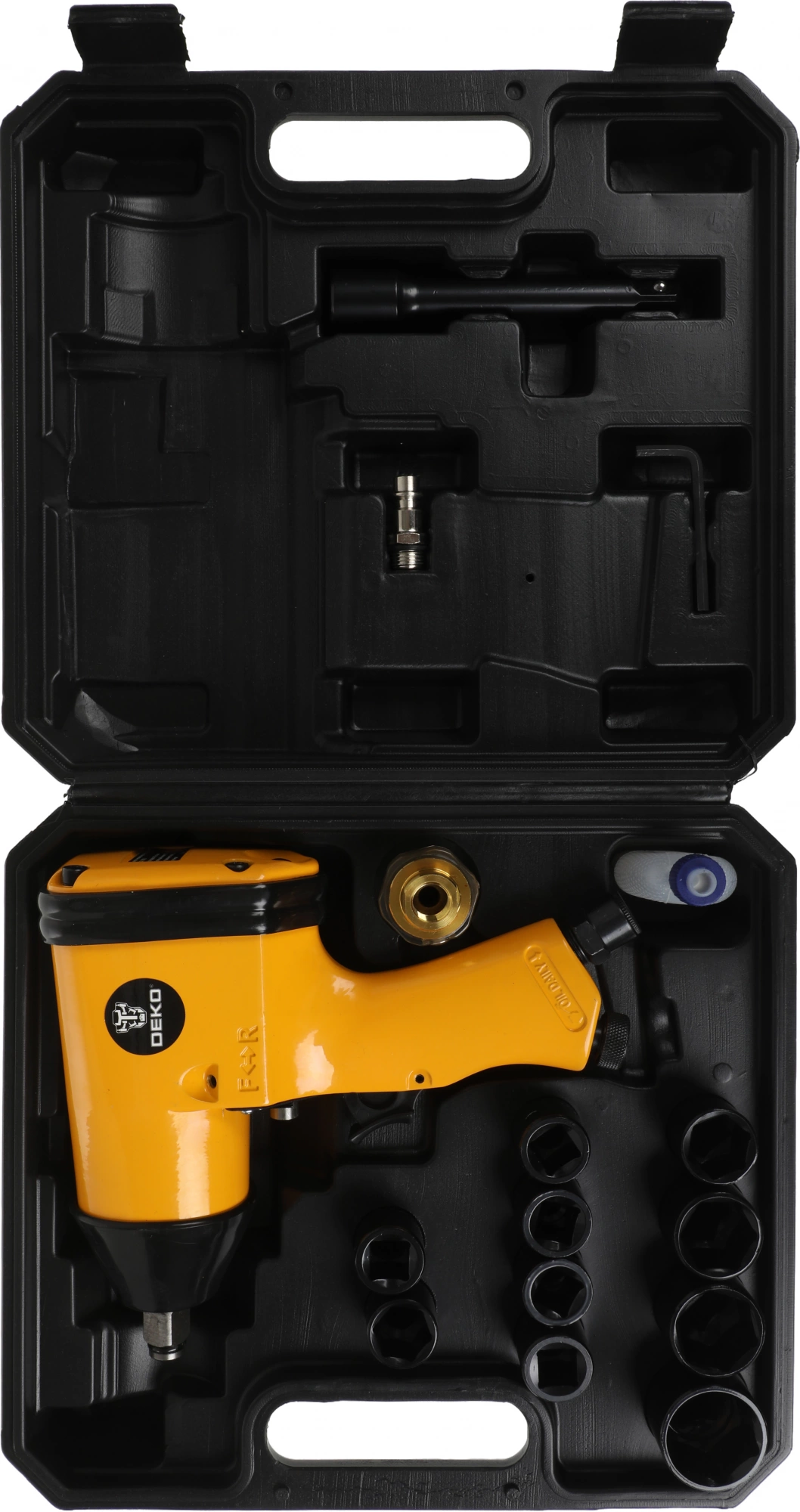 Гайковерт пневматический ударный DEKO DKPT01 SET 3 в чемодане с набором 16 предметов.
