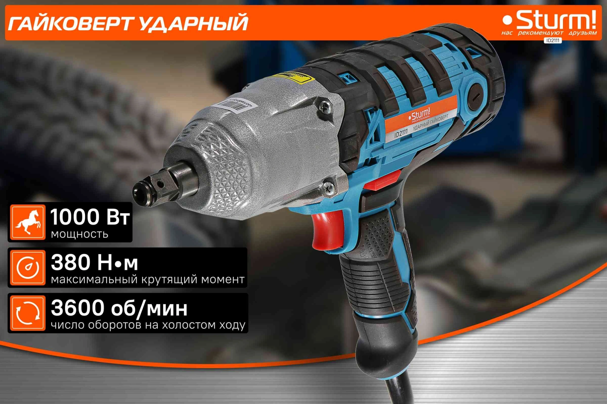 Гайковерт Sturm! ID2111 1000Вт патрон:квад.1/ 2" (кейс в комплекте)