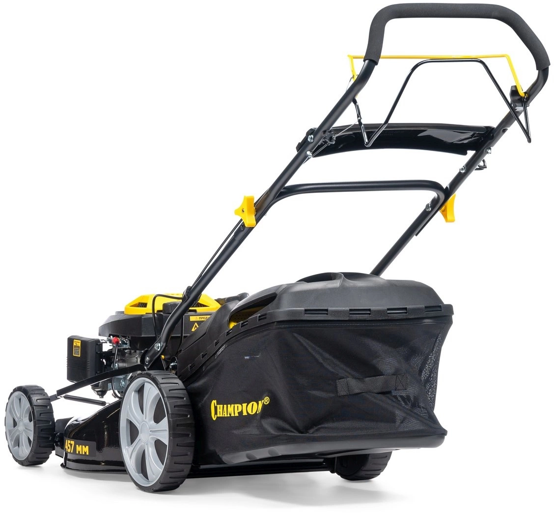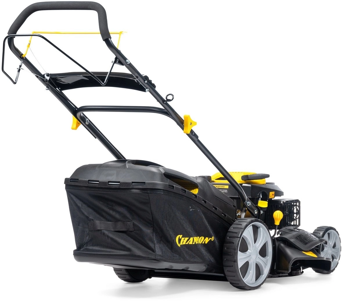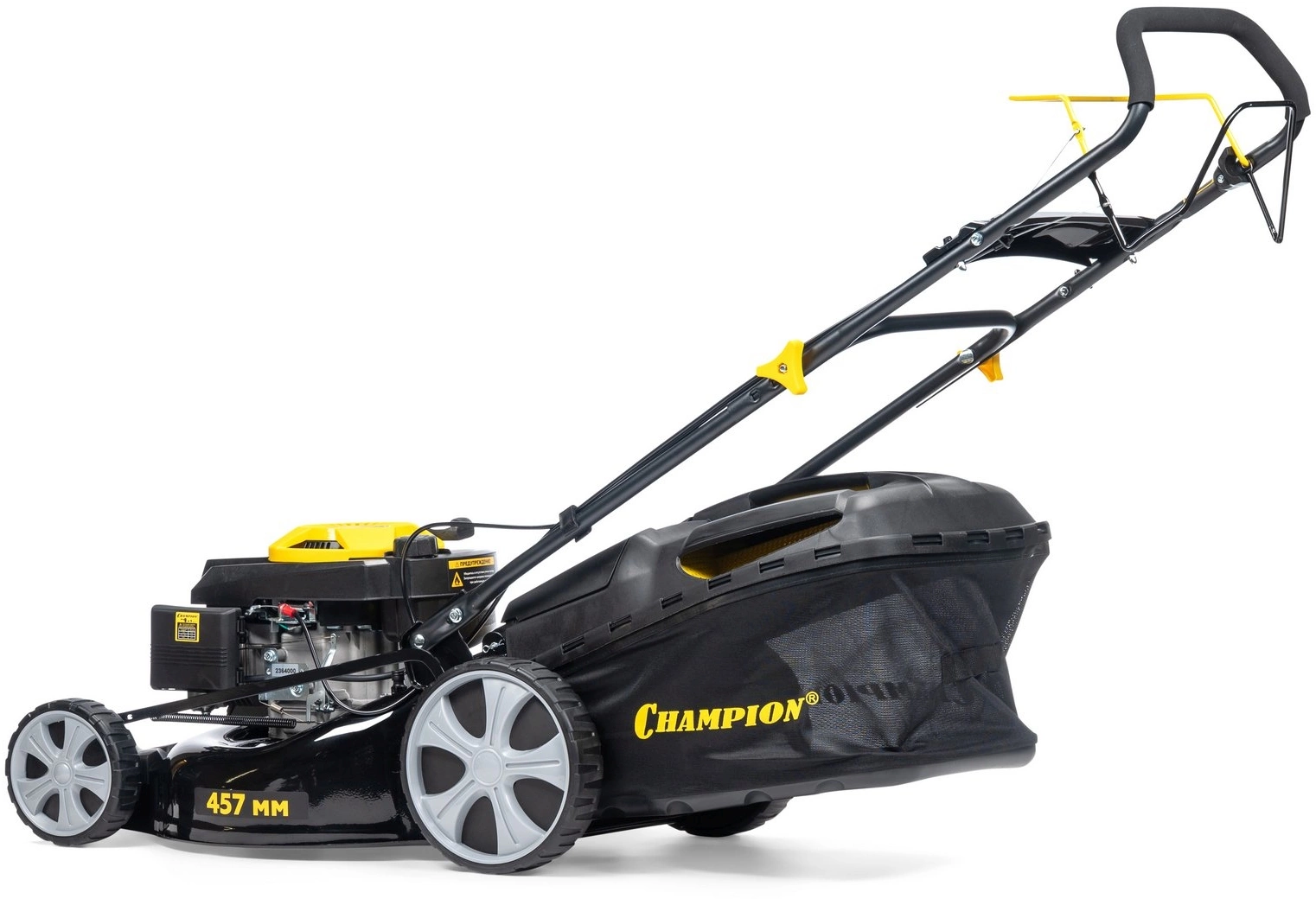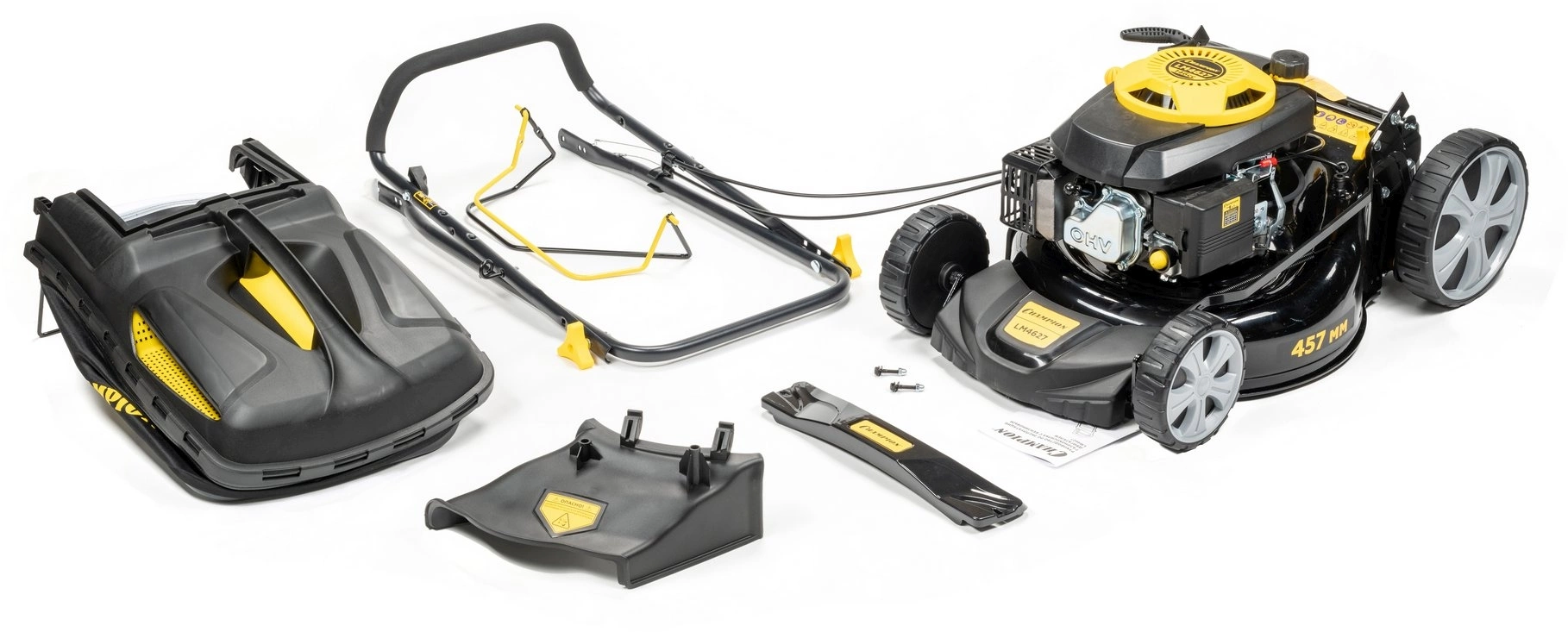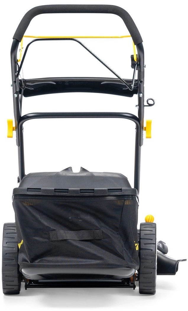 Большие задние колеса. Четырехтактный двигатель. Верхнее расположение клапанов. Глушитель обеспечивающий пониженный уровень шума. Самоходная. Большой комбинированный травосборник. Стальной корпус. Центральная регулировка высоты скашивания. Складывающаяся рукоятка. Сбалансированный центр тяжести.