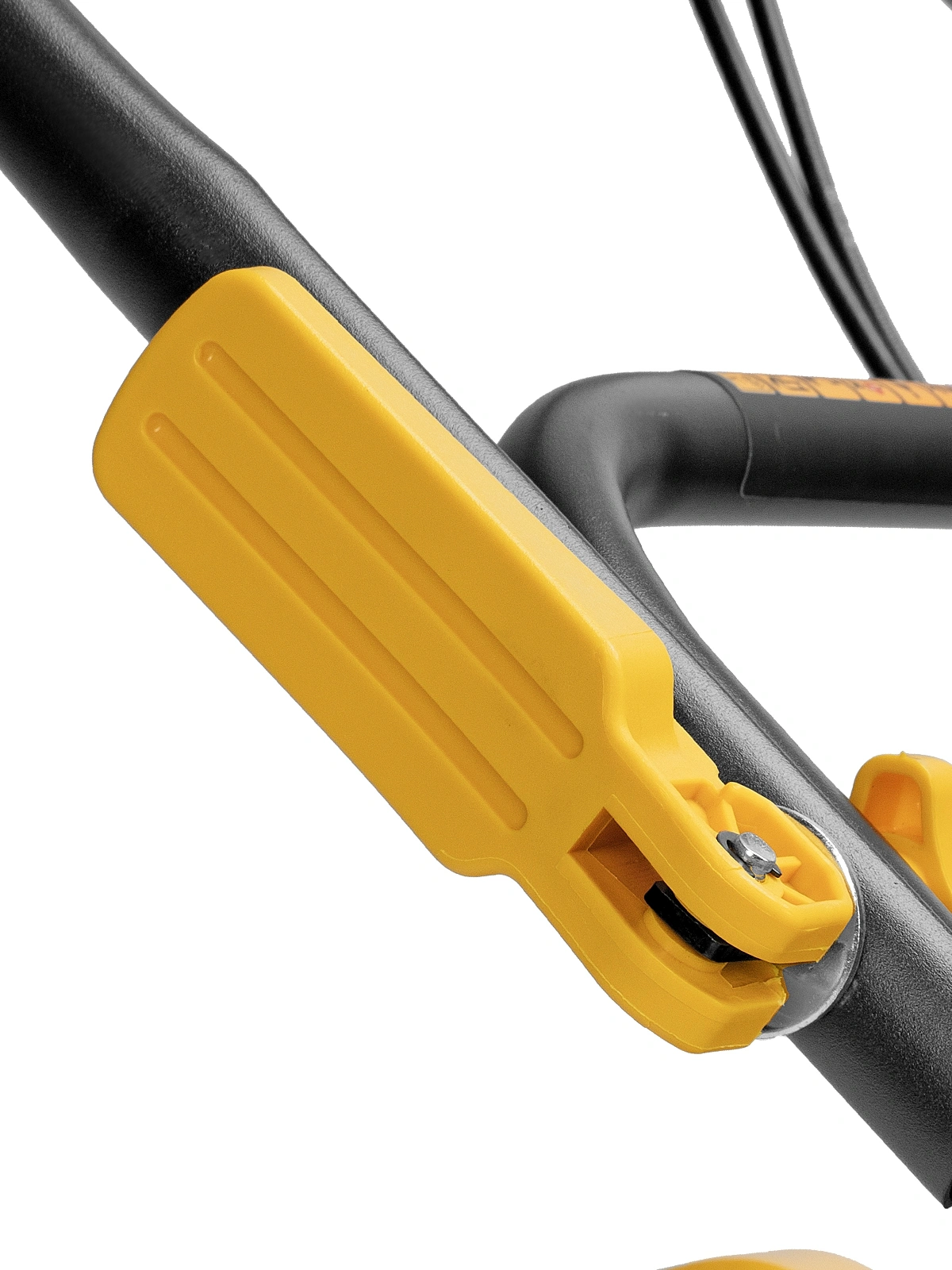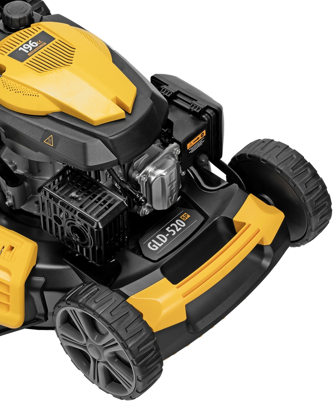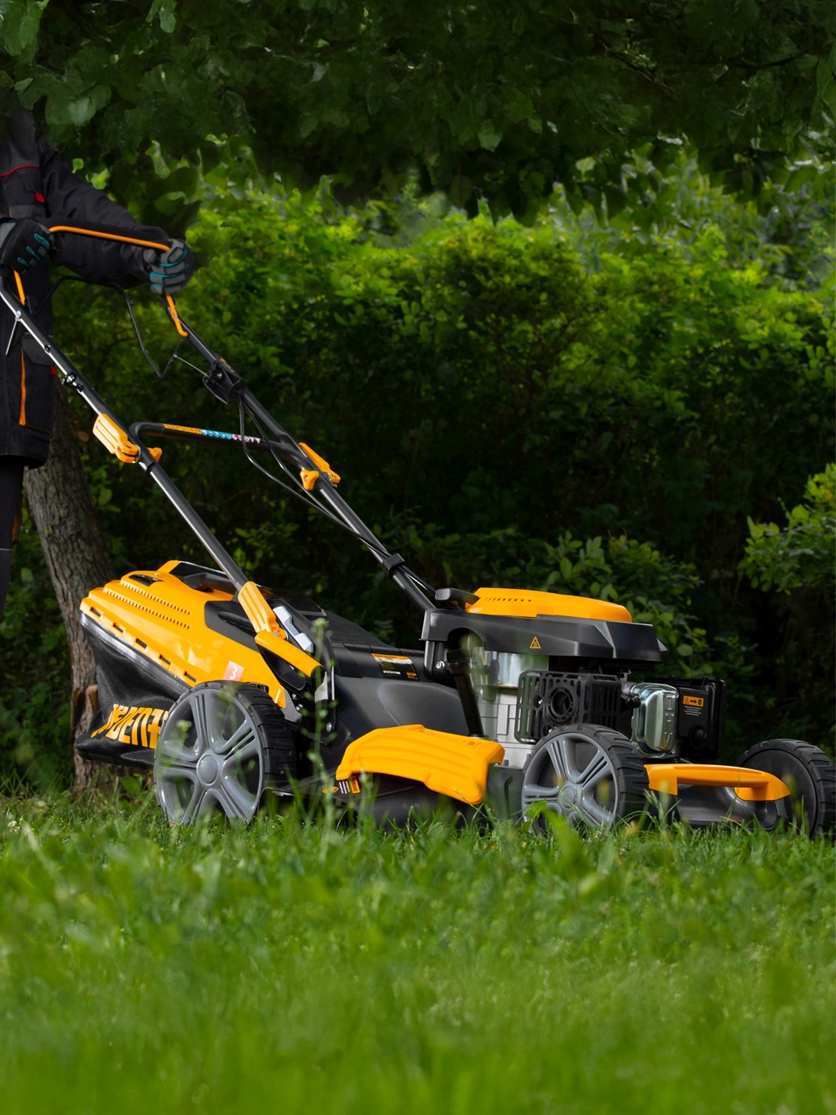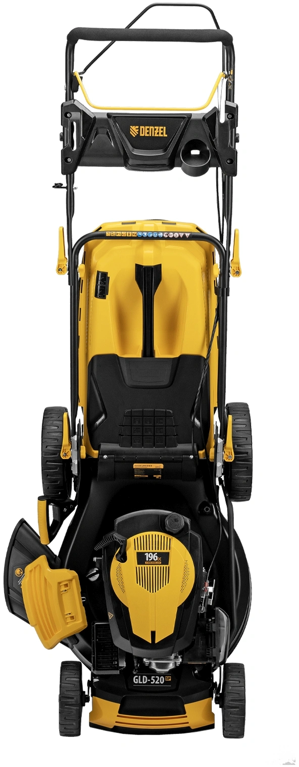 Газонокосилка в сборе с ножом и колесами, травосборник, дефлектор бокового выброса, нижняя часть рукоятки, верхняя часть рукоятки, комплект крепежа, ключ свечной, фиксатор троса, заглушка для мульчирования, руководство по эксплуатации с гарантийным талоном.