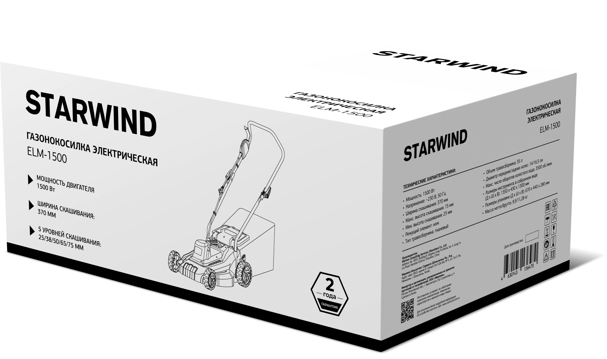 Газонокосилка роторная Starwind ELM-1500 1500Вт