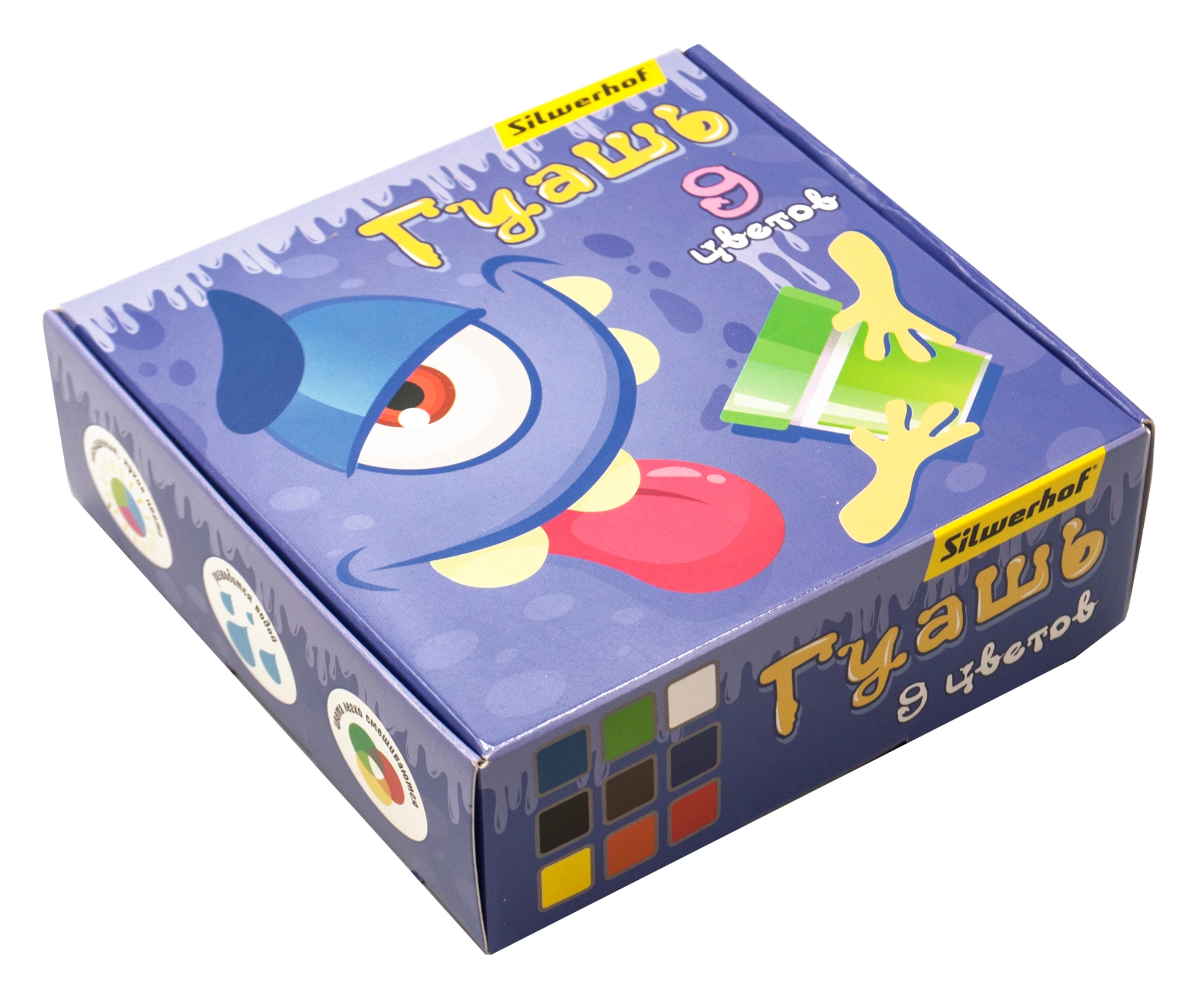 Гуашь Silwerhof Монстрики 9цв. бан. 20мл. картон.кор. (продается кратно 12 шт.)
