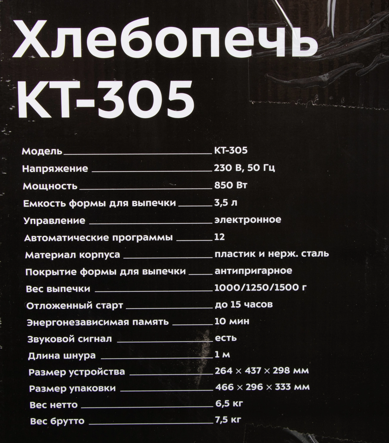 Хлебопечь Kitfort КТ-305 850Вт черный/серебристый
