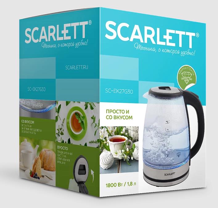 Чайник электрический Scarlett SC-EK27G30 1.8л. 1800Вт сталь/черный корпус: стекло/пластик