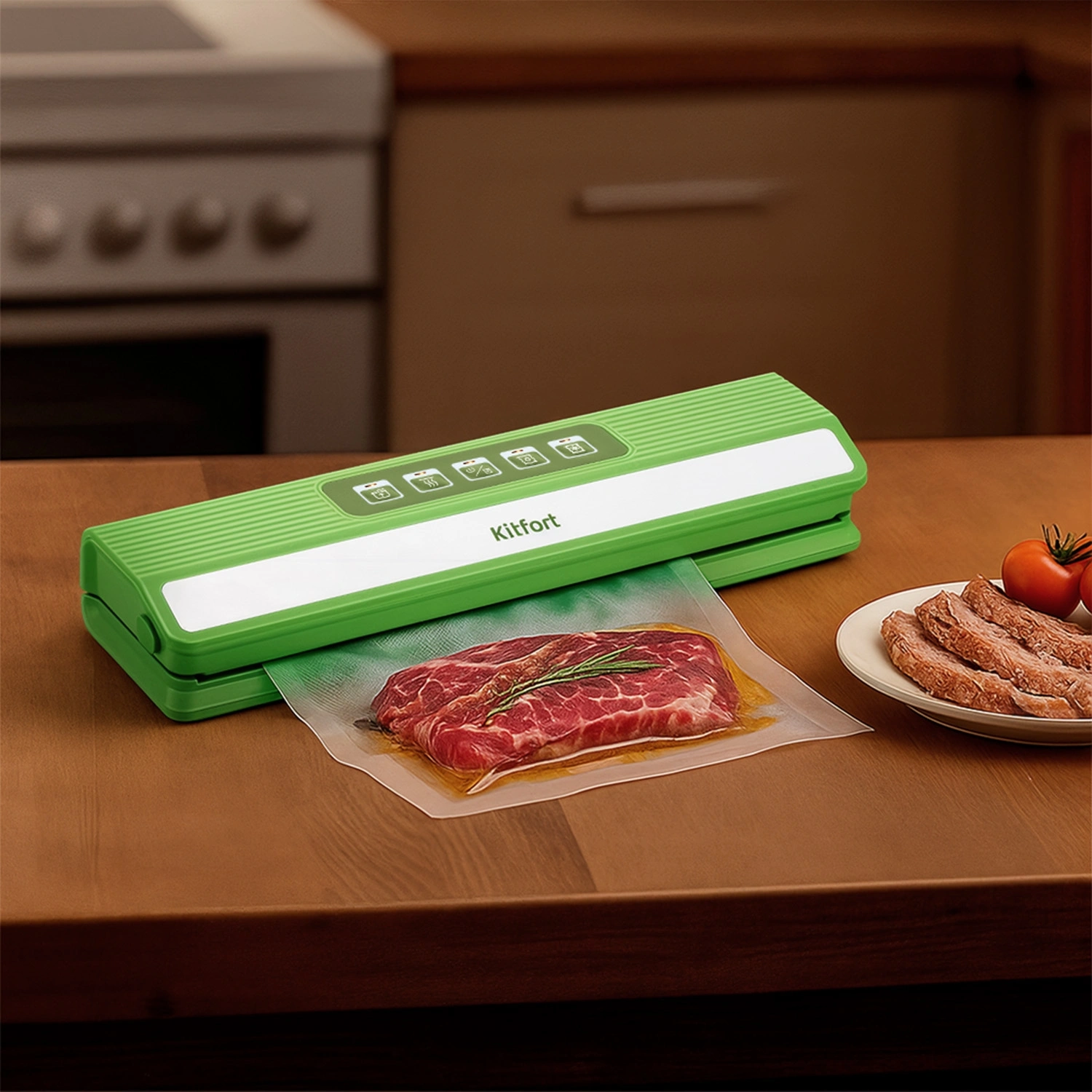 Вакуумный упаковщик Kitfort КТ-1558 ручной 70Вт 0.6Бар шир.пак.:30см зеленый