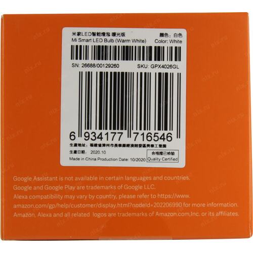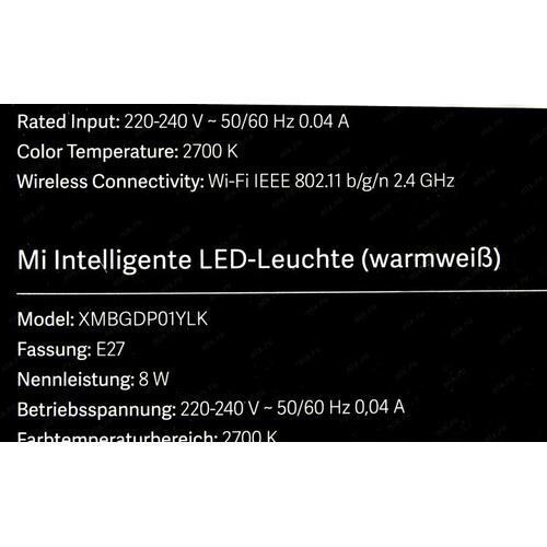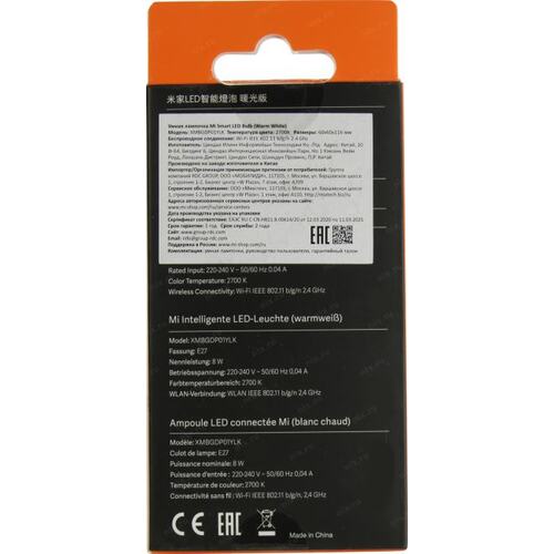 Умная светодиодная лампочка с удаленным управлением по WiFi с помощью приложения Mi Home APP: задавайте расписание, управление голосом, возможно включение/выключение со смартфона, а также регулировка яркости;;Стандарты WiFi: 2.4ГГц 802.11 b/g/n