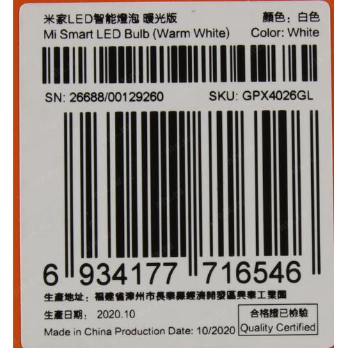 Умная лампа Xiaomi Smart LED Bulb E27 9Вт 810lm Wi-Fi (GPX4026GL)