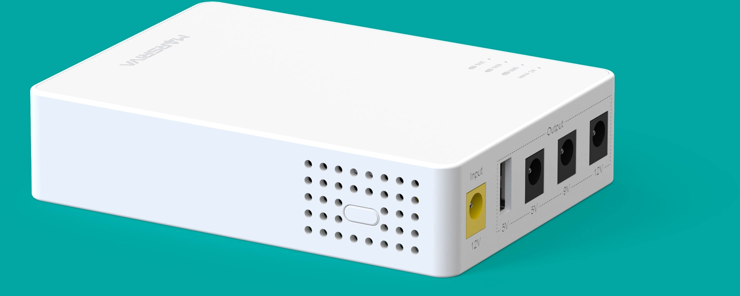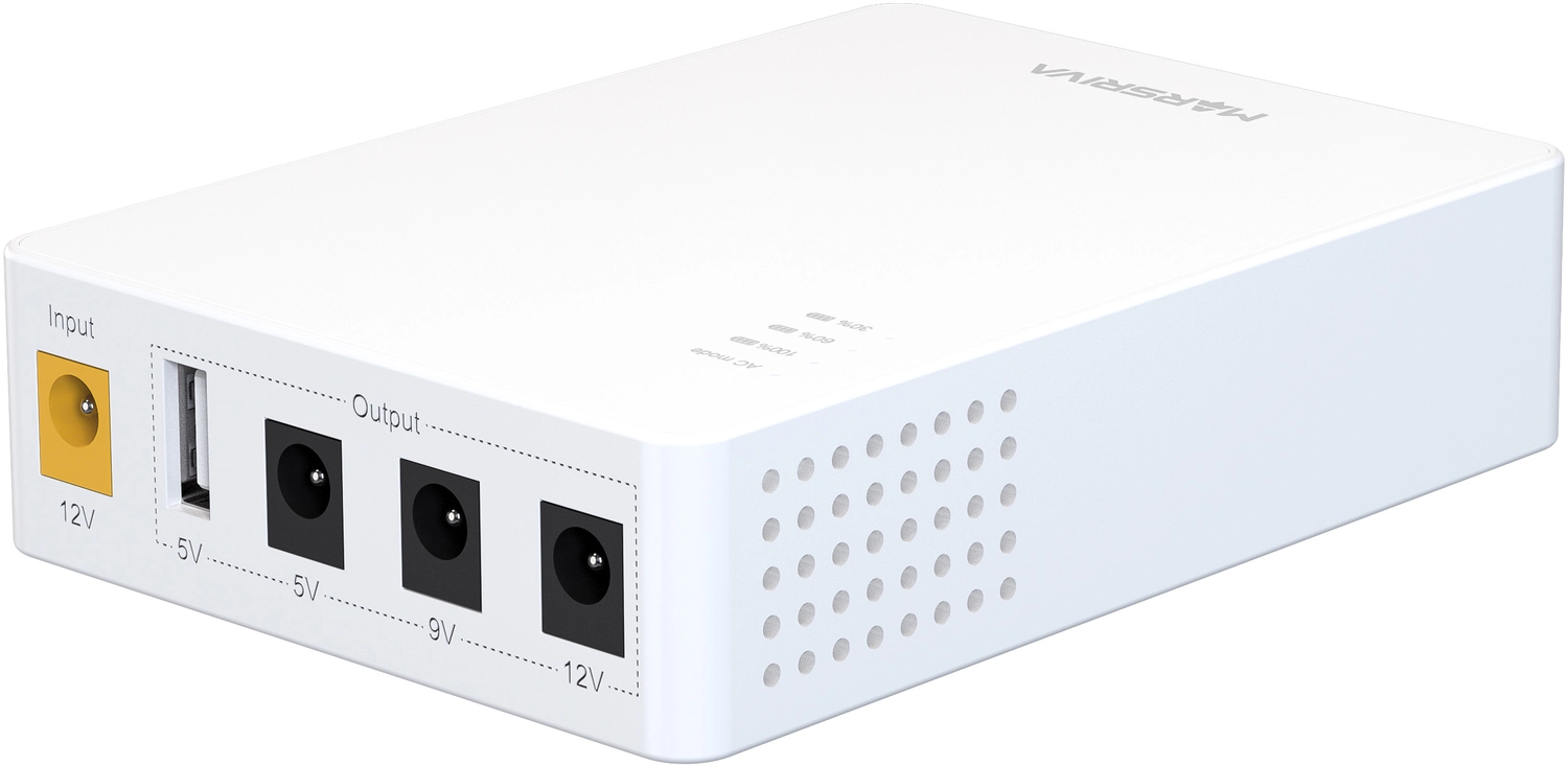 ИБП мини KP3 Pro, вход DC 12V/ 4.0A; независимый выход 12V, 9V, 5V DC, с USB 5V/ 2.1A, 36 Ватт макс., 10000mAh MARSRIVA
