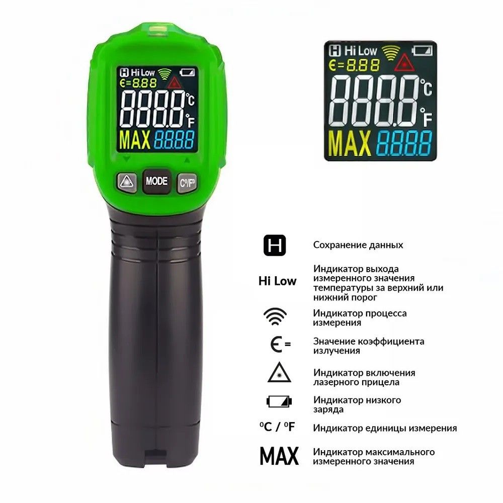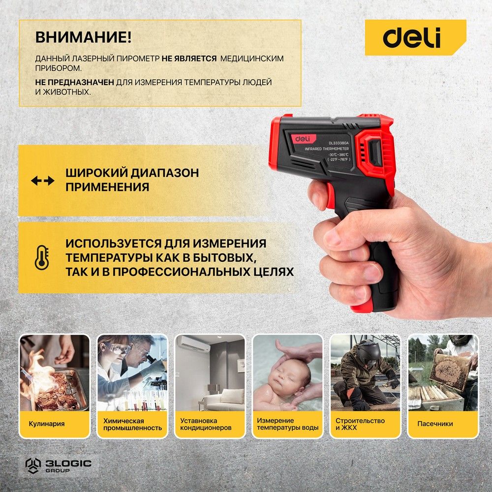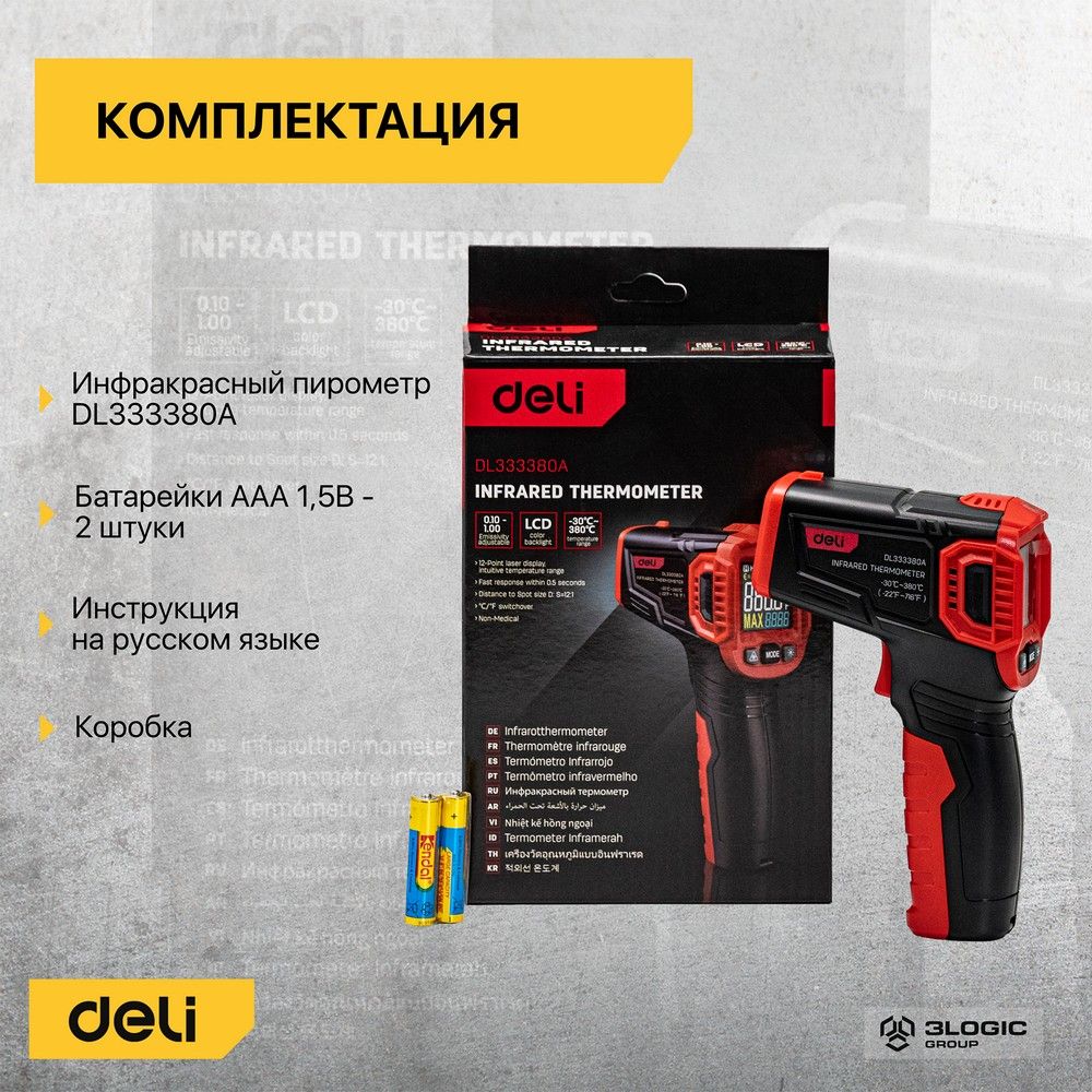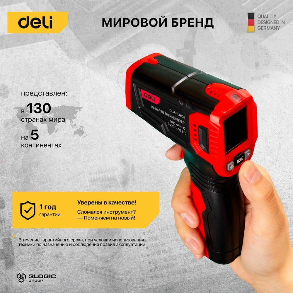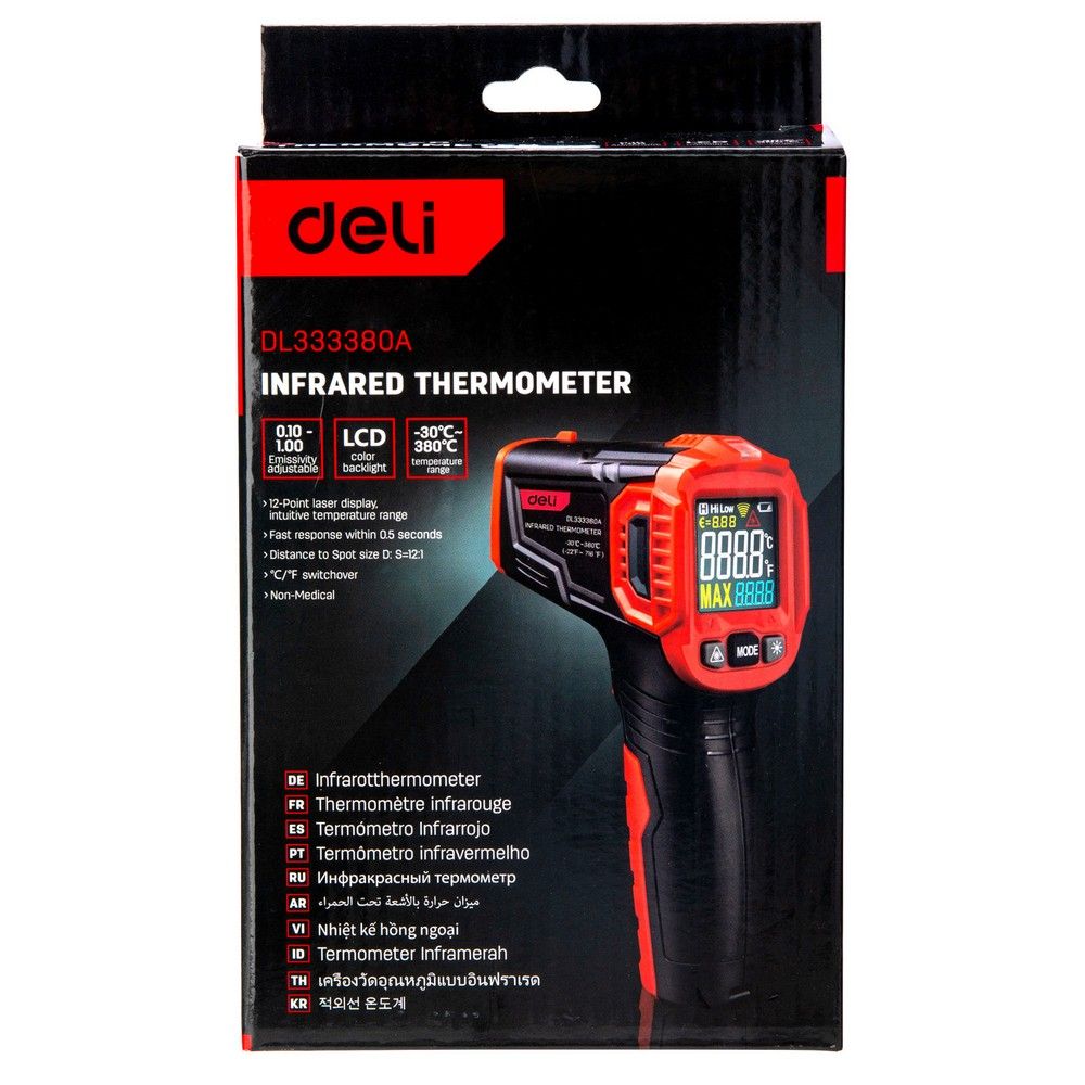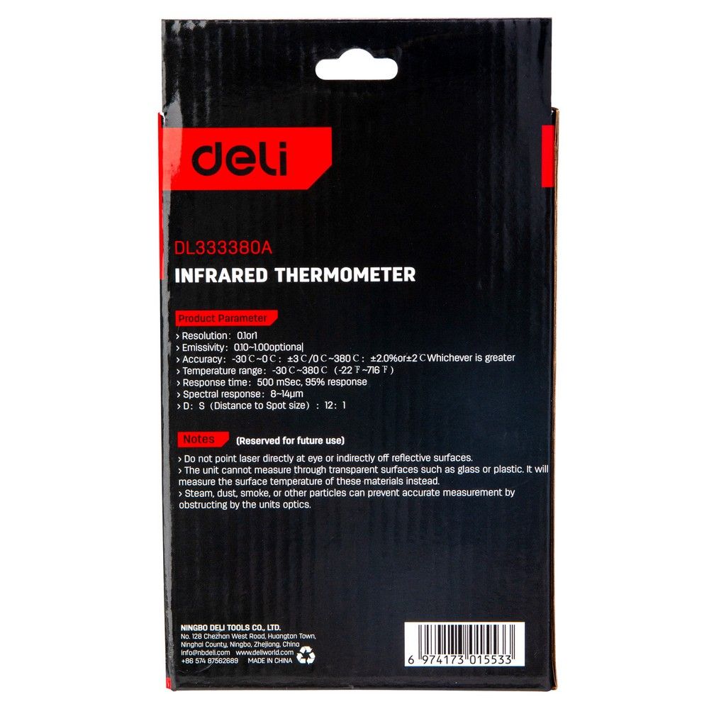 Инфракрасный пирометр (термометр) с цветным дисплеем Deli DL333380A -30…380°C