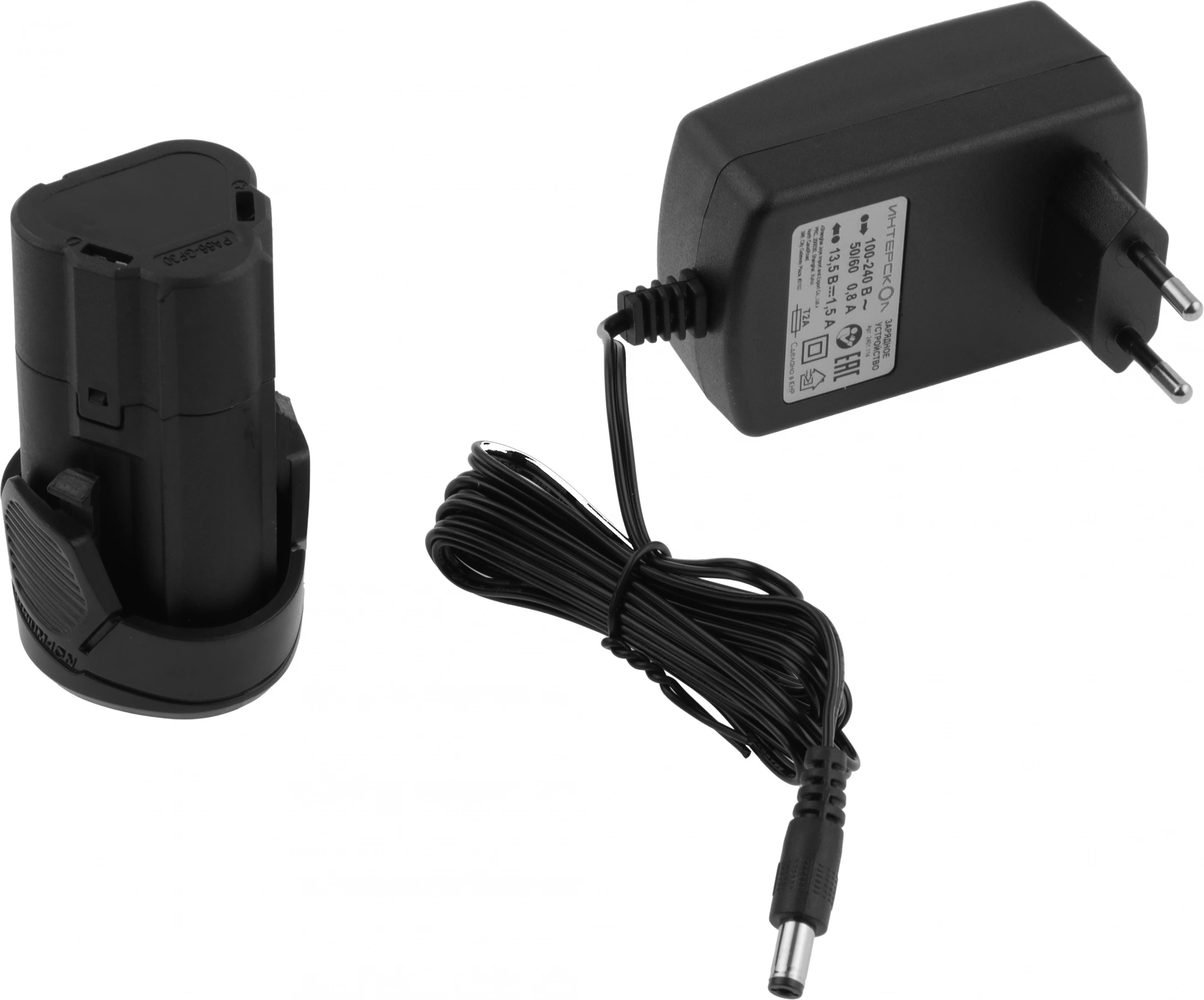 Машина ручная сверлильная аккумуляторная, патрон кулачковый, инструкция по безопасности и руководство по эксплуатации, гарантийный талон, батарея аккумуляторная, 2,0 Ач - 2 шт., зарядное устройство, сумка тканевая.