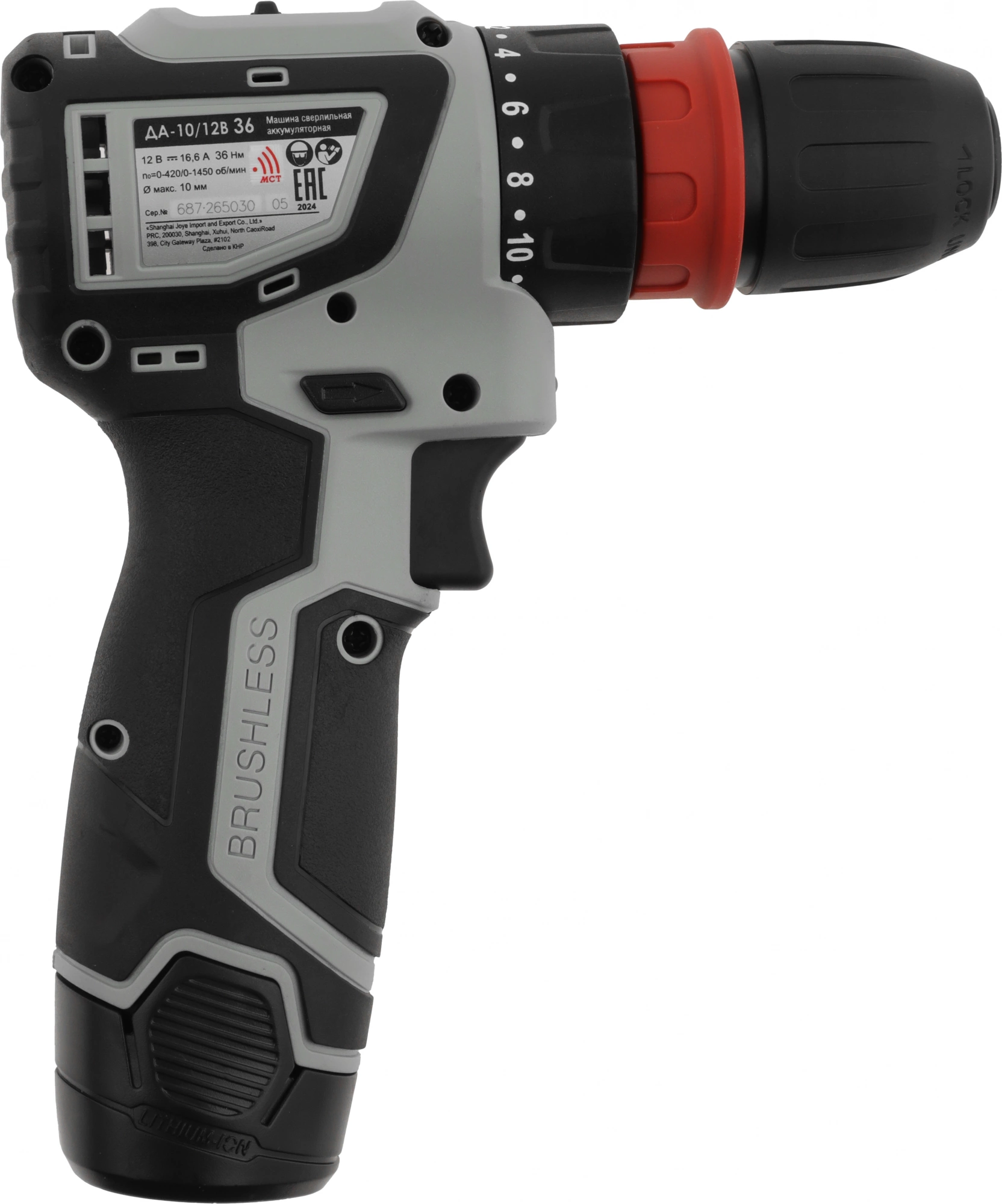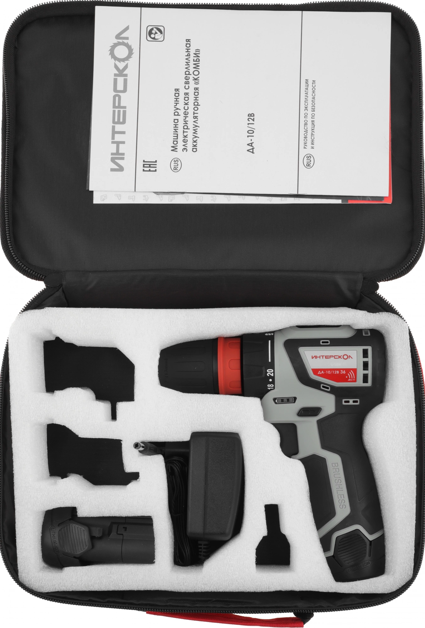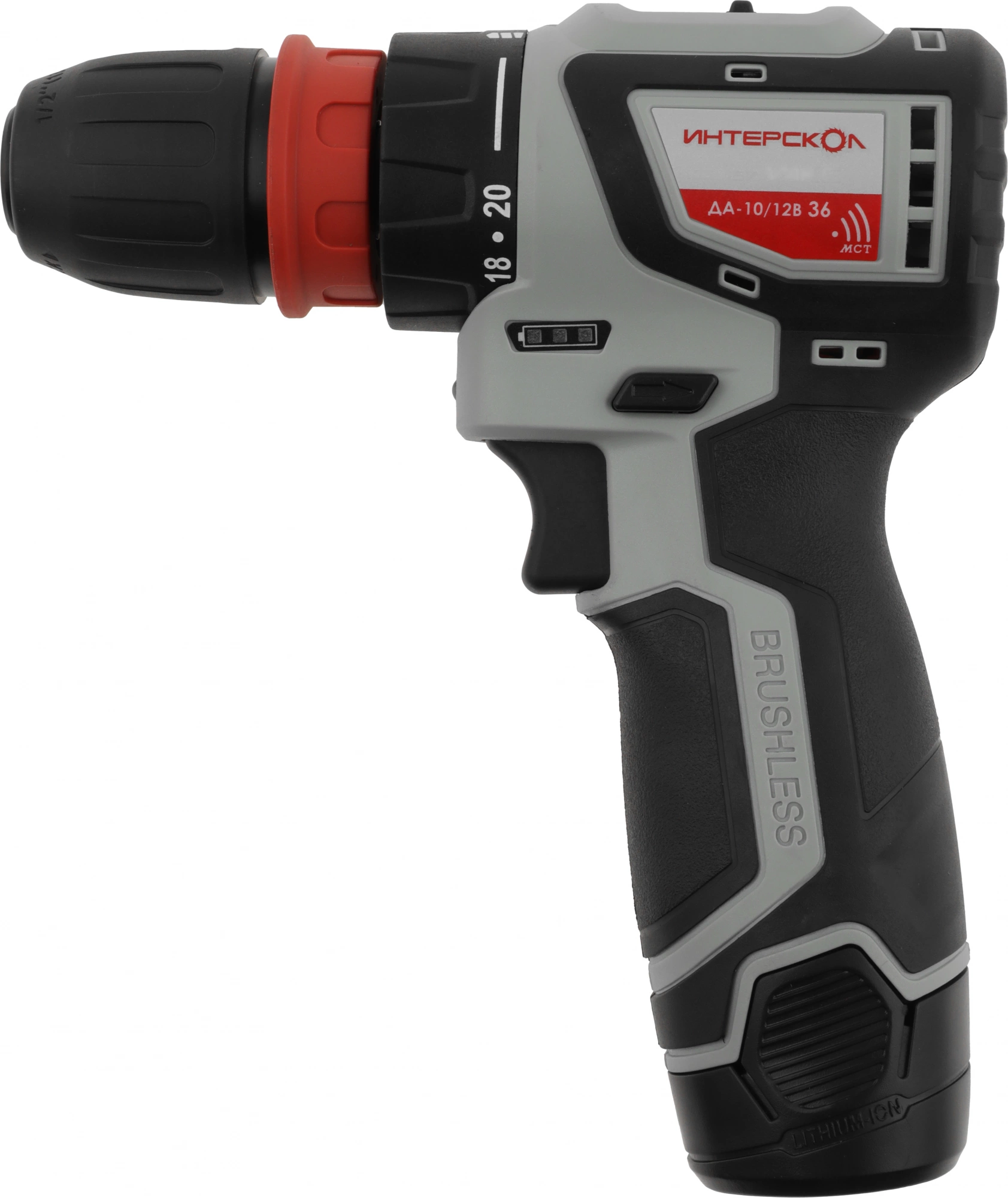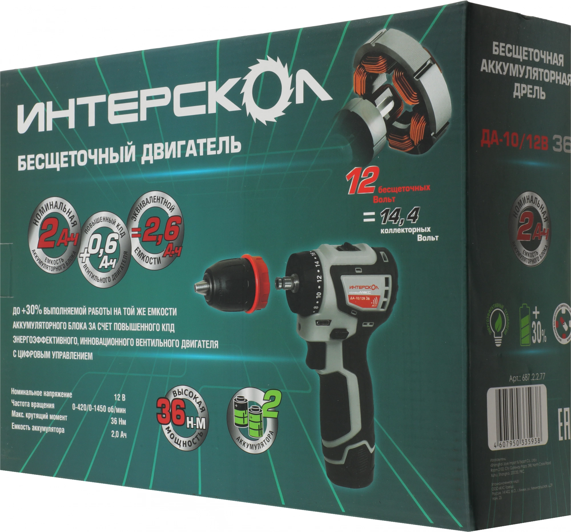 ИНТЕРСКОЛ ДА-10/12В 36 КомбиМАКС бесщеточная аккум. дрель-шуруп [687.2.2.77] ( Li-ion, сумка, 2 аккум., 2Ач, патрон св )