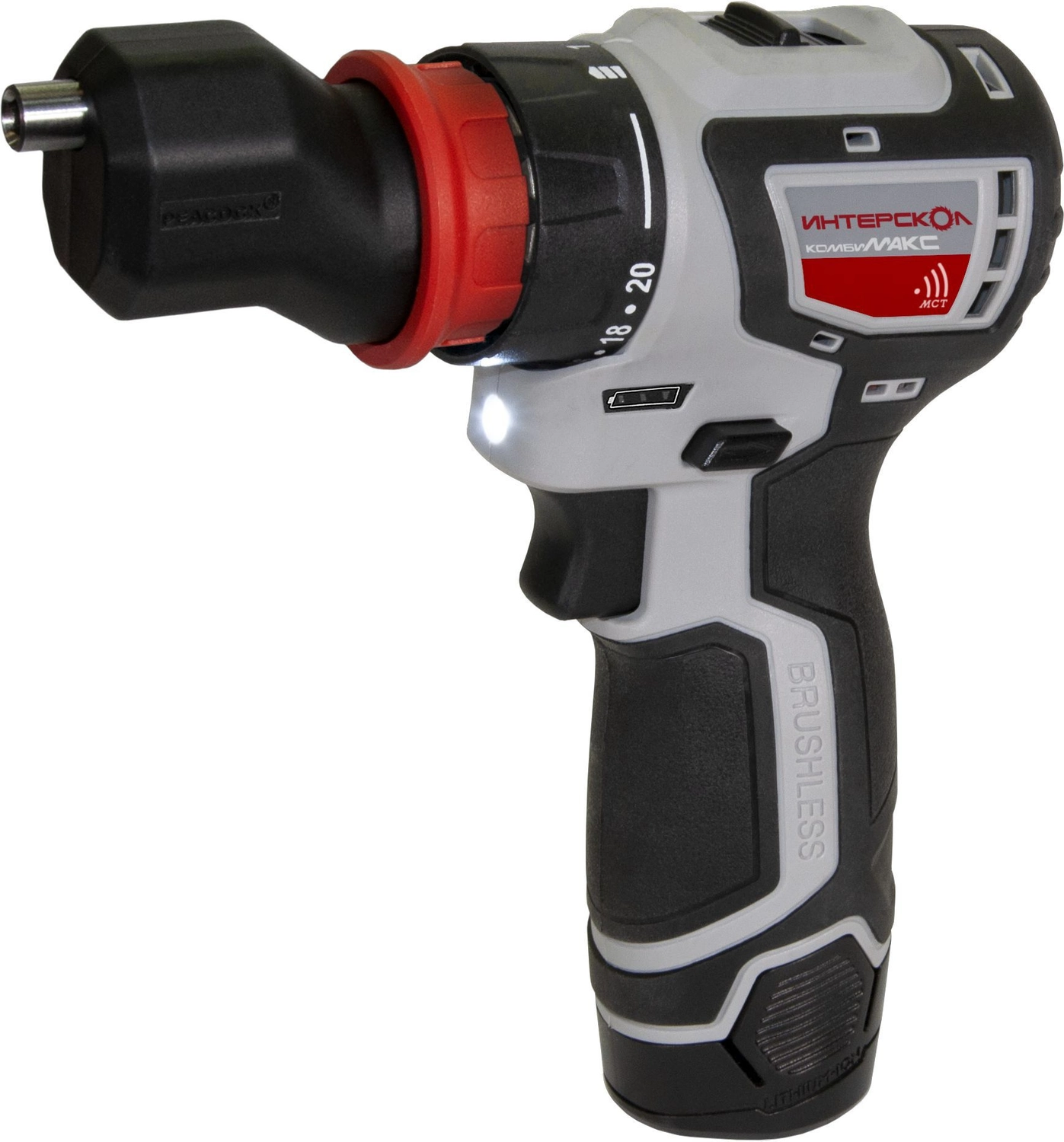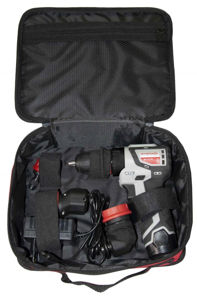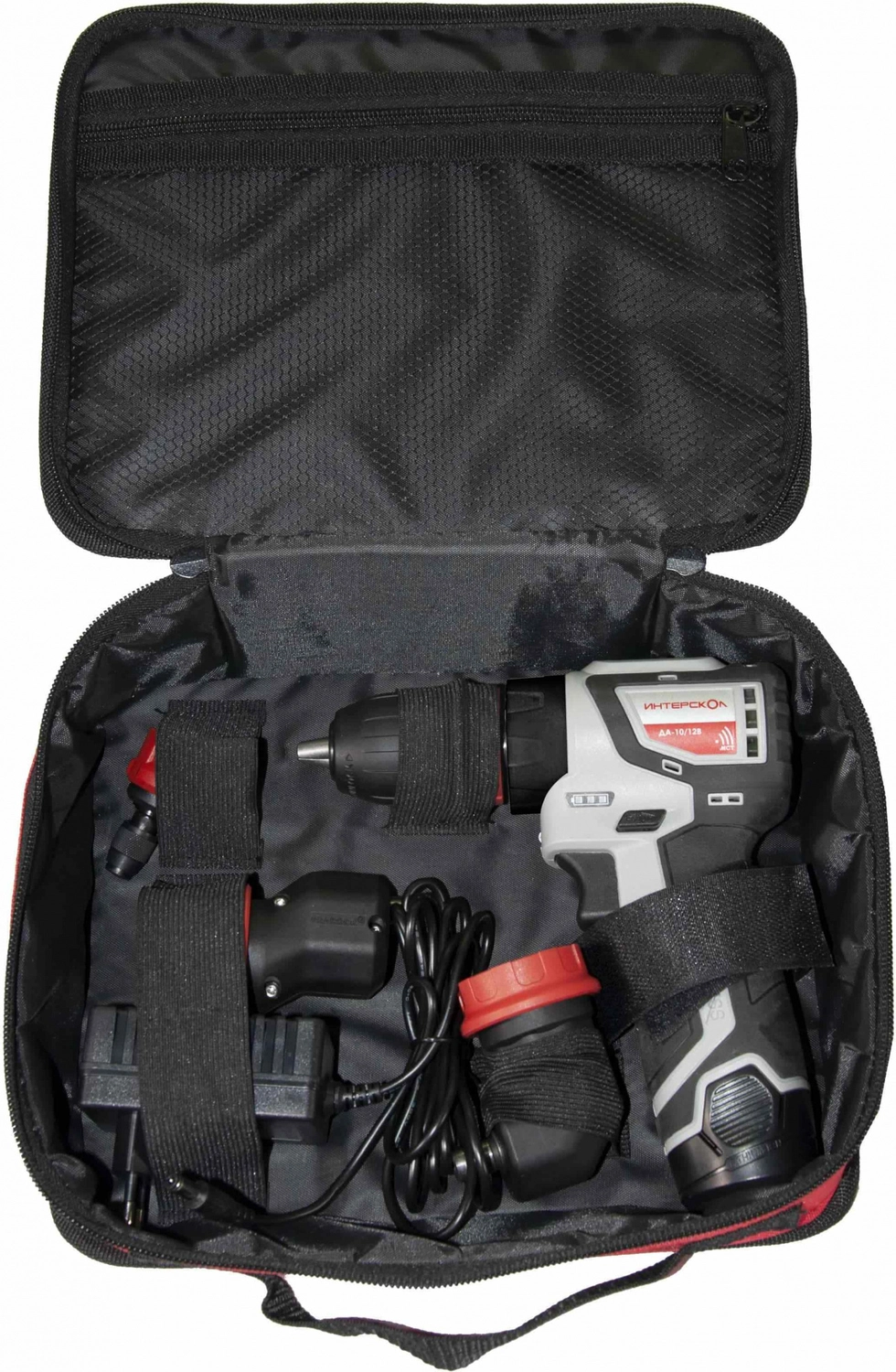 ИНТЕРСКОЛ ДА-10/12В 36 КомбиМАКС бесщеточная аккум. дрель-шуруп [687.2.2.78] ( Li-ion, сумка, 2 аккум., 2Ач, 4 насадки )