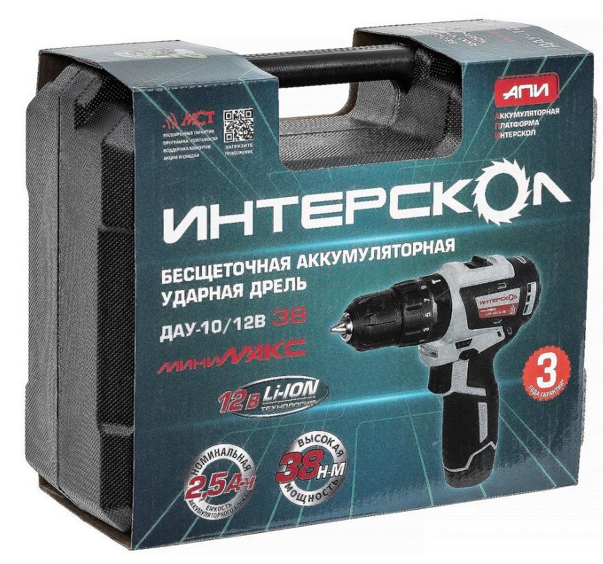 ИНТЕРСКОЛ ДАУ-10/12В 38 МиниМАКС бесщеточная аккум. дрель-шуруп [767.2.2.45] ( Li-ion, кейс, 2 аккум., 2,5 Ач, ЗУ )