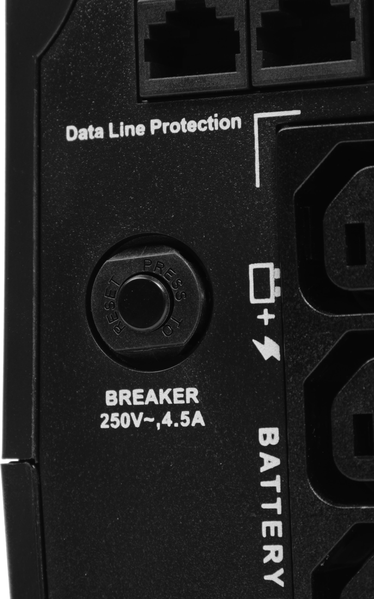 защита сети (порт RJ-45) , защита телефона (порт RJ-11) , от глубокого разряда батареи, от импульсных помех, от короткого замыкания, от перегрузки