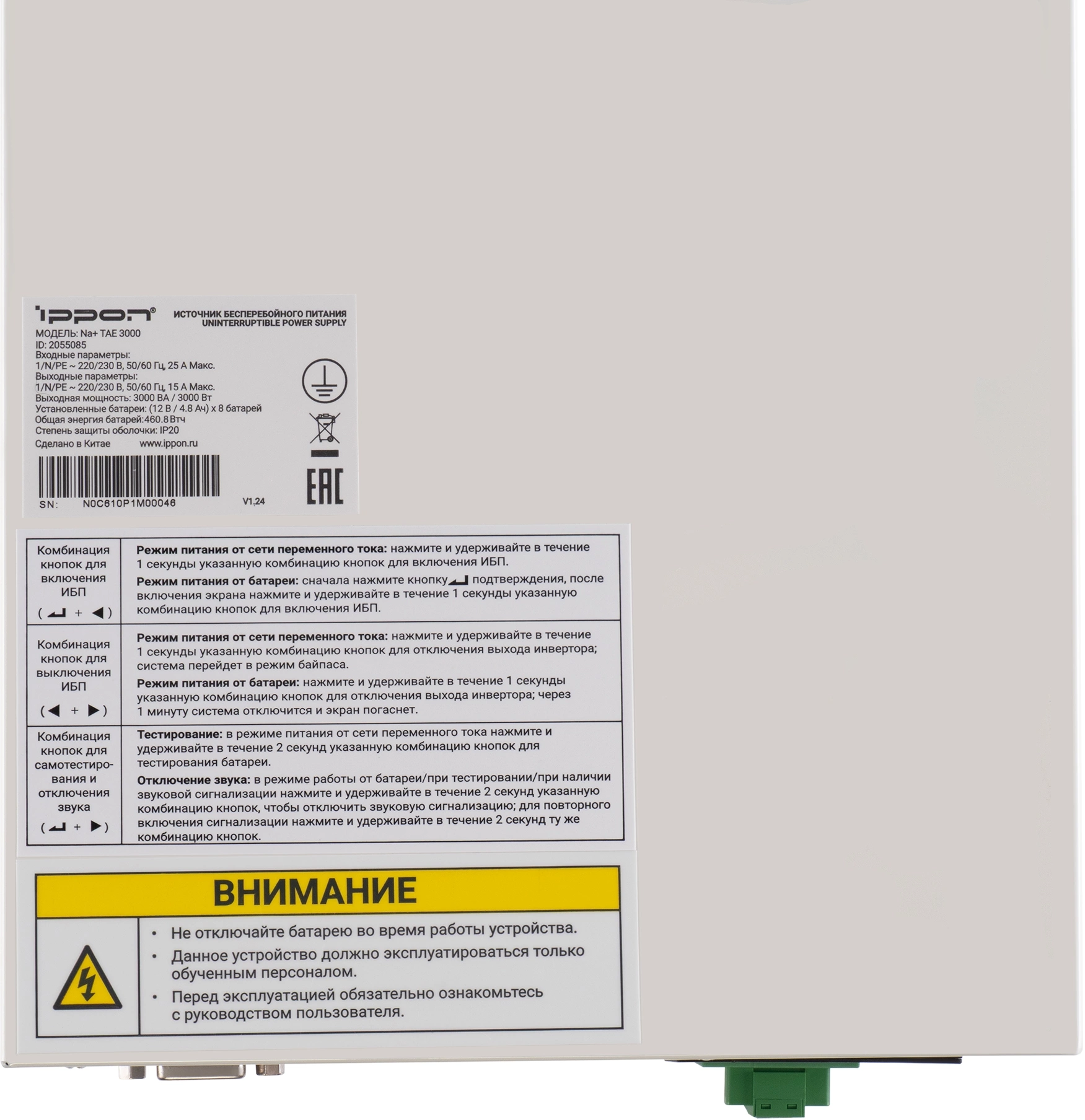 Источник бесперебойного питания Ippon Na+ TAE 3000 3000Вт 3000ВА белый 2055085