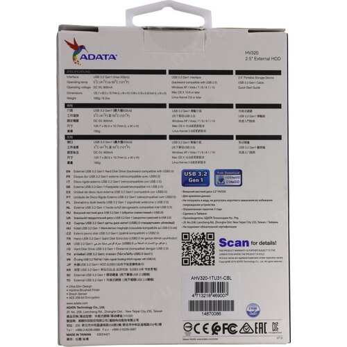 Жесткий диск A-Data USB3.1 1TB AHV320-1TU31-CBL HV320 2.5" синий | НИКС Екатеринбург