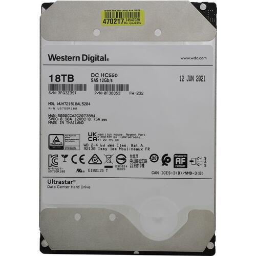 Накопитель на жестком магнитном диске WD Жесткий диск Western Digital Ultrastar DC HC550 WUH721818AL5204 (0F38353) 18ТБ 3.5" 7200RPM 512MB SAS 512E Helium
