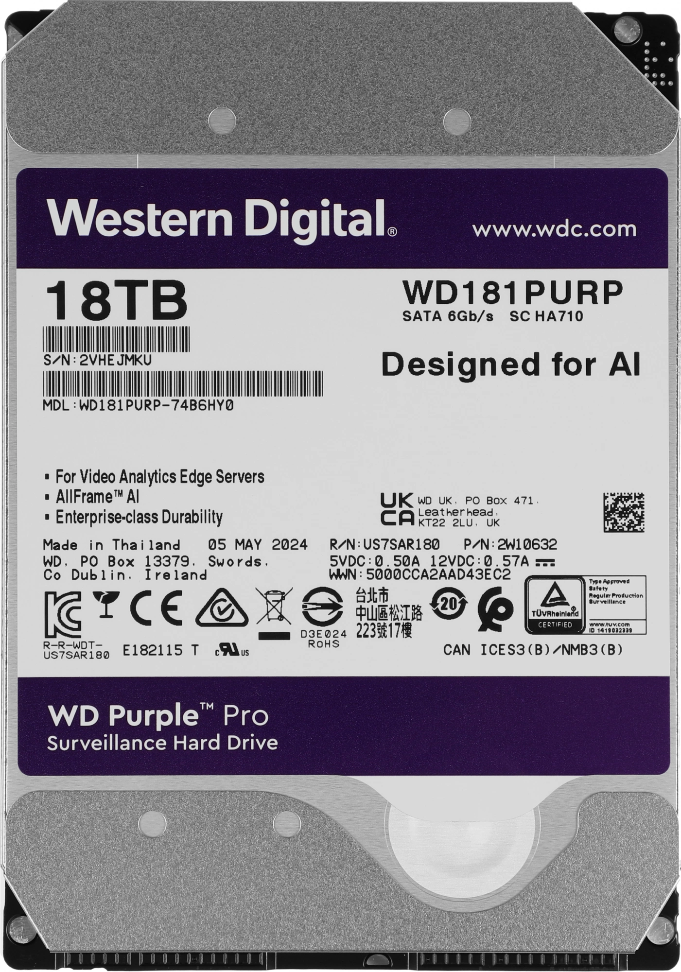 Жесткий диск WD Purple PRO WD181PURP 18ТБ 3, 5" 7200RPM 512MB (SATA-III) All Frame AI
