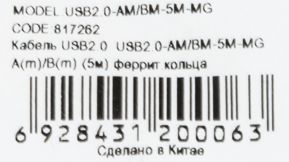 Кабель для подключения оргтехники, источников бесперебойного питания и прочих устройств с портом USB type-B к персональным компьютерам и ноутбукам. Длина 5 метров.