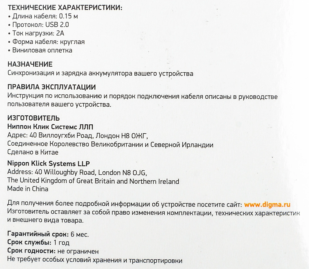 Кабель Digma MICROUSB-0.15M-WH USB (m) -micro USB (m) 0.15м белый
