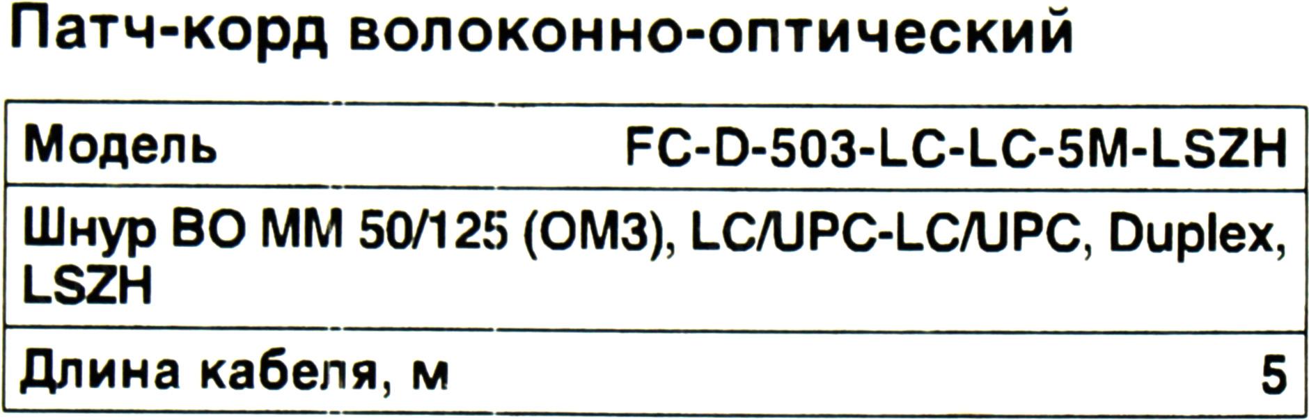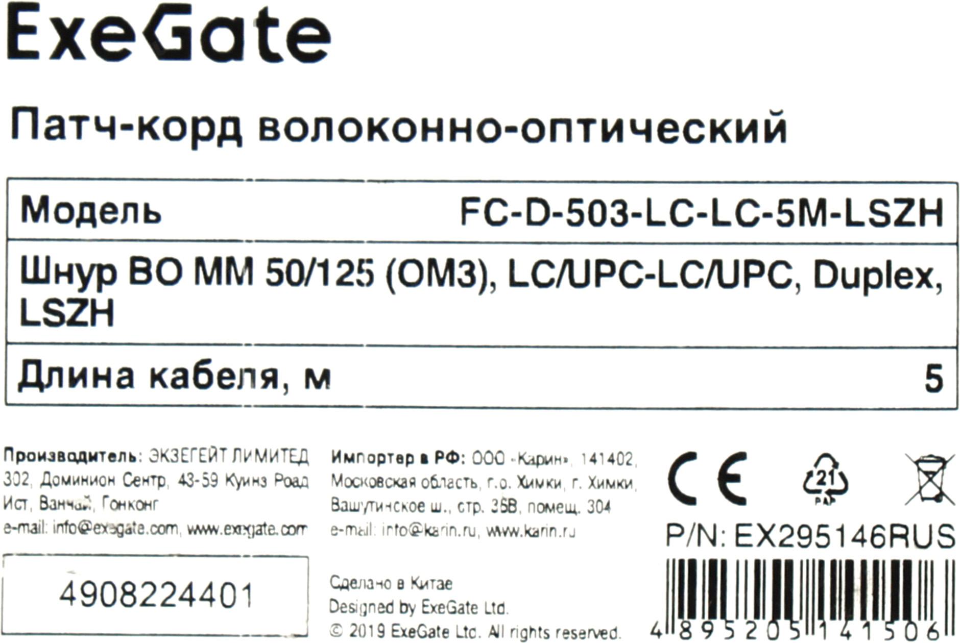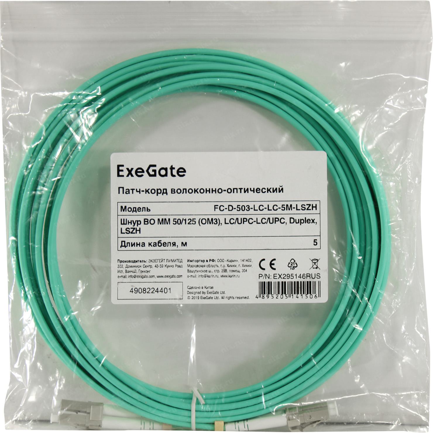 Кабель ExeGate < FC-D-503-LC-LC-5M-LSZH> Patch cord ВО, LC-LC, Duplex, LSZH, MM 50/ 125 5м