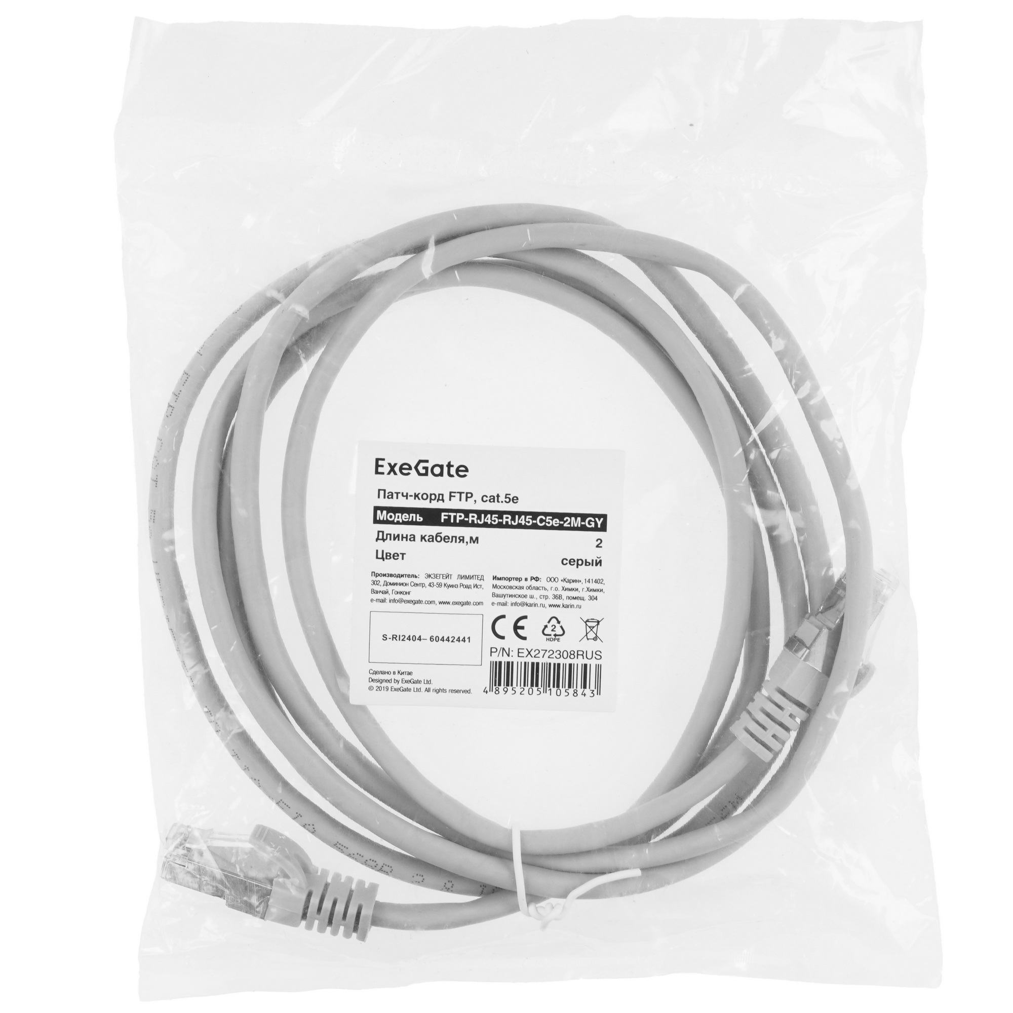 Кабель ExeGate < FTP-RJ45-RJ45-C5e-2M-GY> Patch Cord FTP кат.5e, 2м, серый < EX272308RUS>