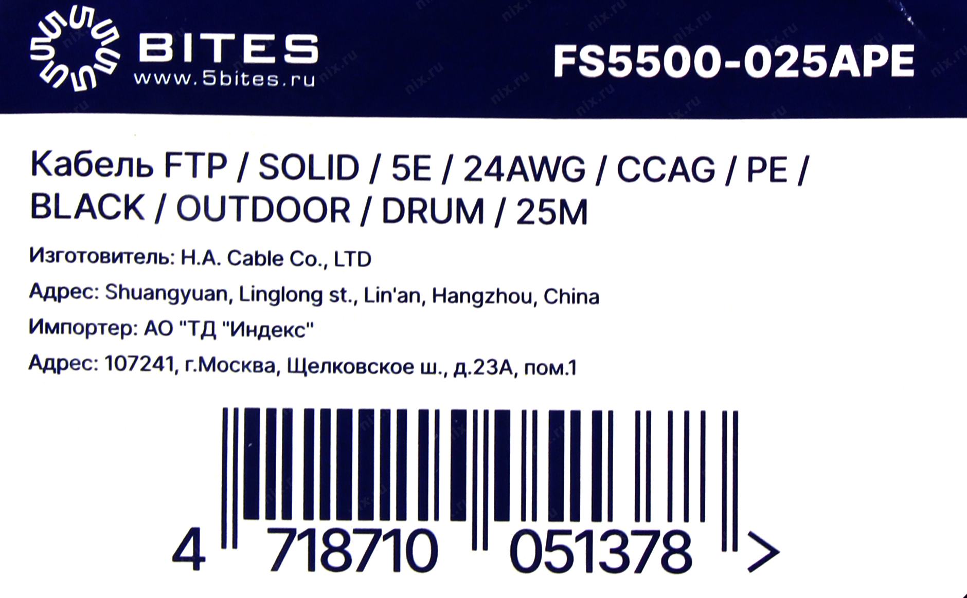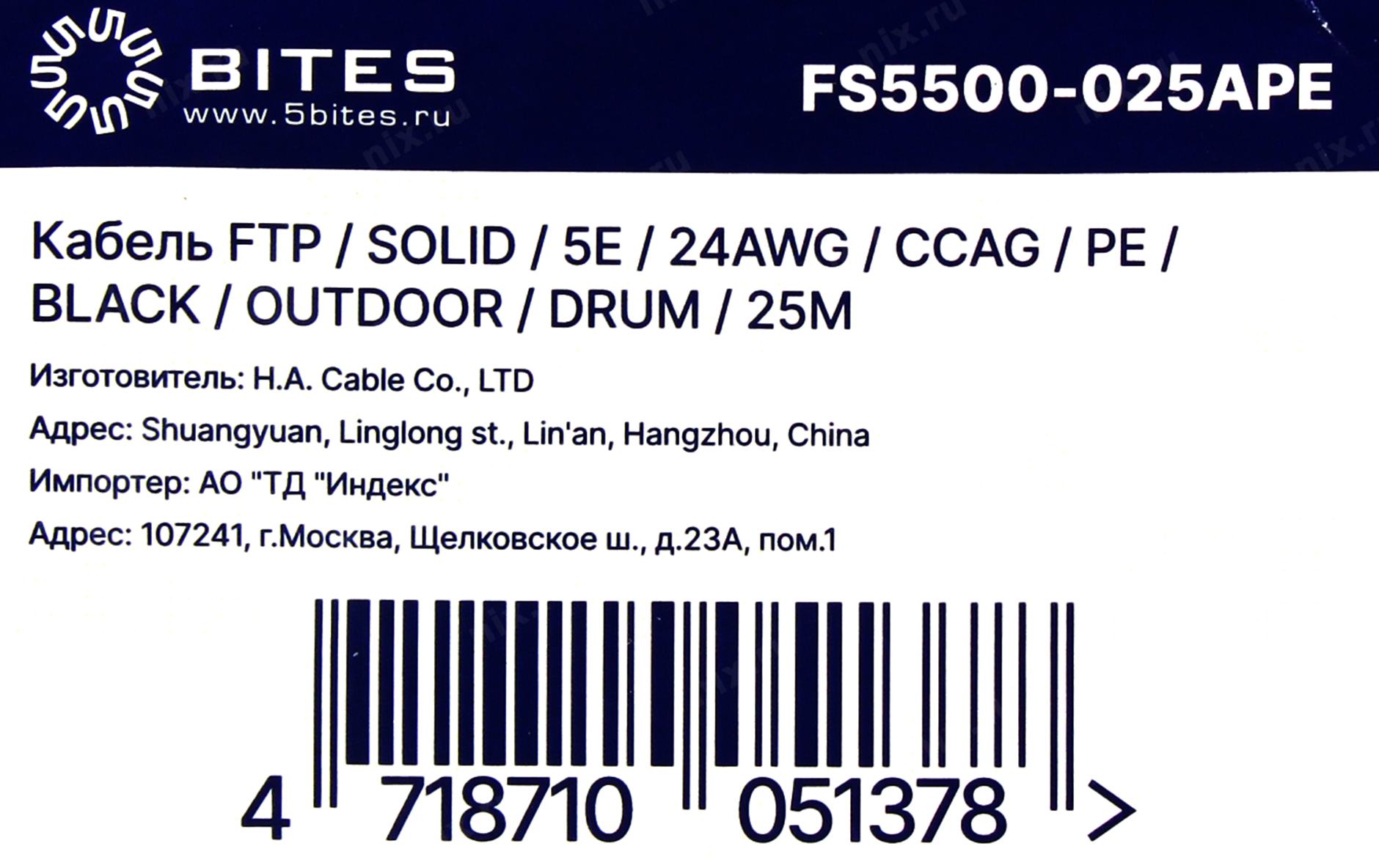 Кабель FTP 4 пары кат.5e < бухта 25м> 5bites < FS5500-025APE>