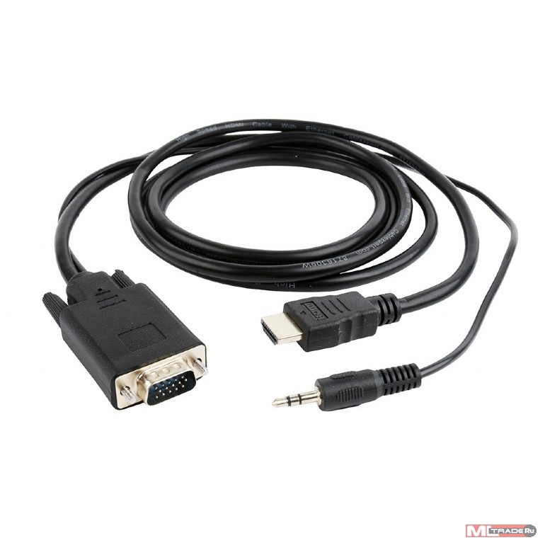 Кабель HDMI->VGA Cablexpert A-HDMI-VGA-03-10, 19M/15M + 3.5Jack, медь, позол.разъемы, 3м, черный, пакет