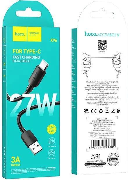 Кабель Hoco X96 Hyper, USB Type-C (m) - USB (m) , 1м, 3A, черный [x96 hyper 27w type-c]