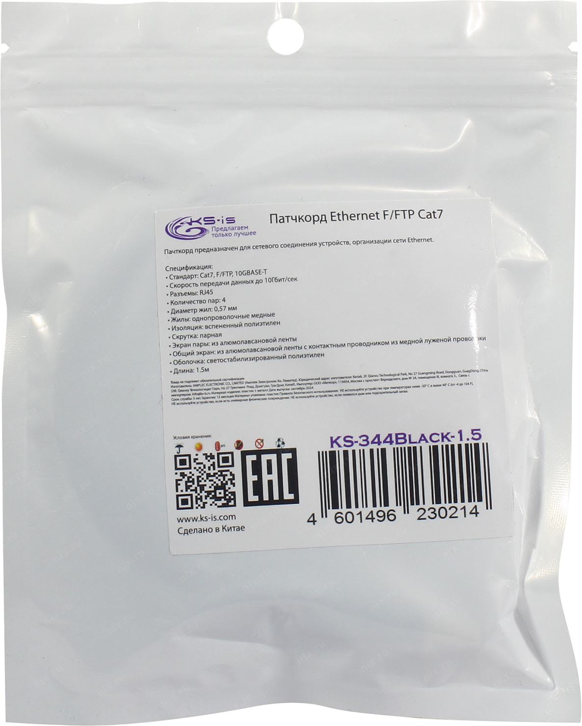 Кабель KS-is < KS-344Black-1.5> Patch Cord FTP кат.7 1.5м, плоский, чёрный