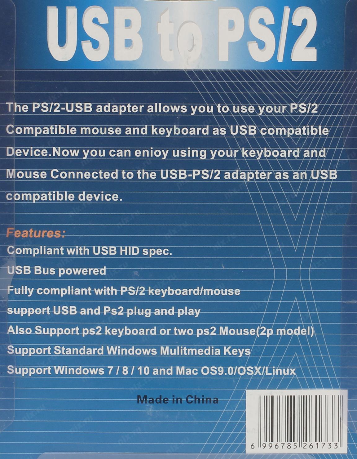 Адаптер для подключения PS/ 2 мышки и клавиатуры к USB порту.