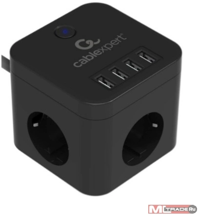 Кабель эксперт Cablexpert Сетевой фильтр Cube CUBE-3-U4-B-1.5 (3р, 10А, 4 х USB, 1.5м, ур.защиты 4+) черный, коробка